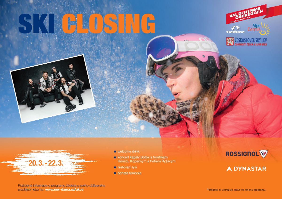 Máte chuť vyrazit na jarní lyžování, než definitivně zabalíte zimní výbavu do skříně? Neváhejte a vyrazte na Ski Closing do Val di Fiemme, kde se můžete těšit na koncert kapely Mirai, welcome drink s ochutnávkou místních specialit, bohatou tombolu a testování lyží Rossignol a Dynastar.