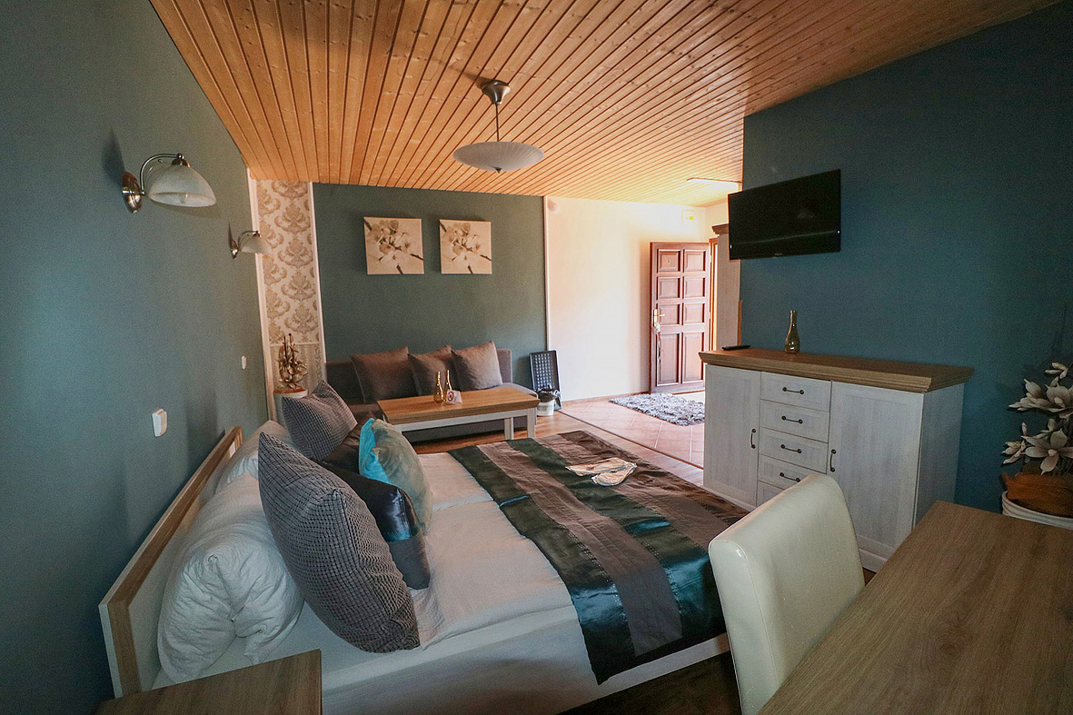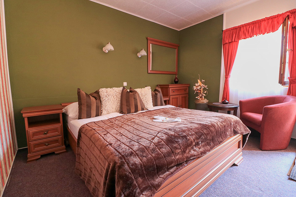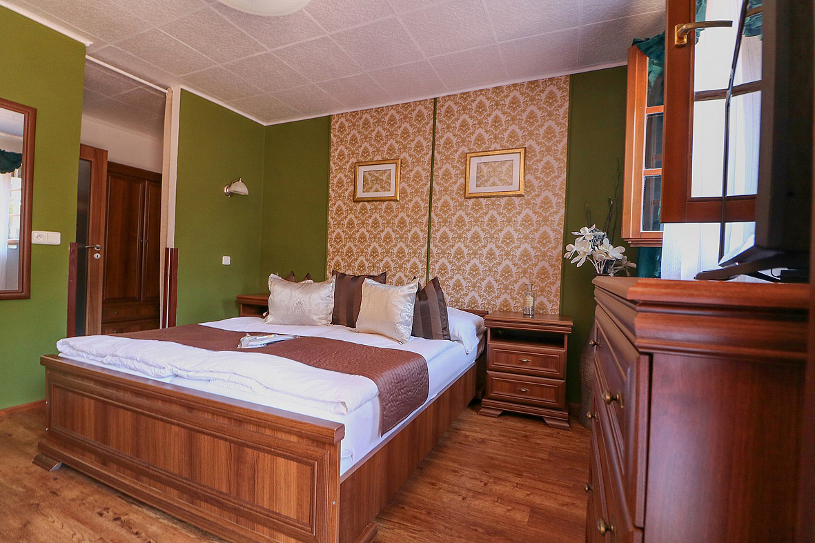 pokoj s manželskou postelí, sociální zařízení se sprchou, možnost přistýlky