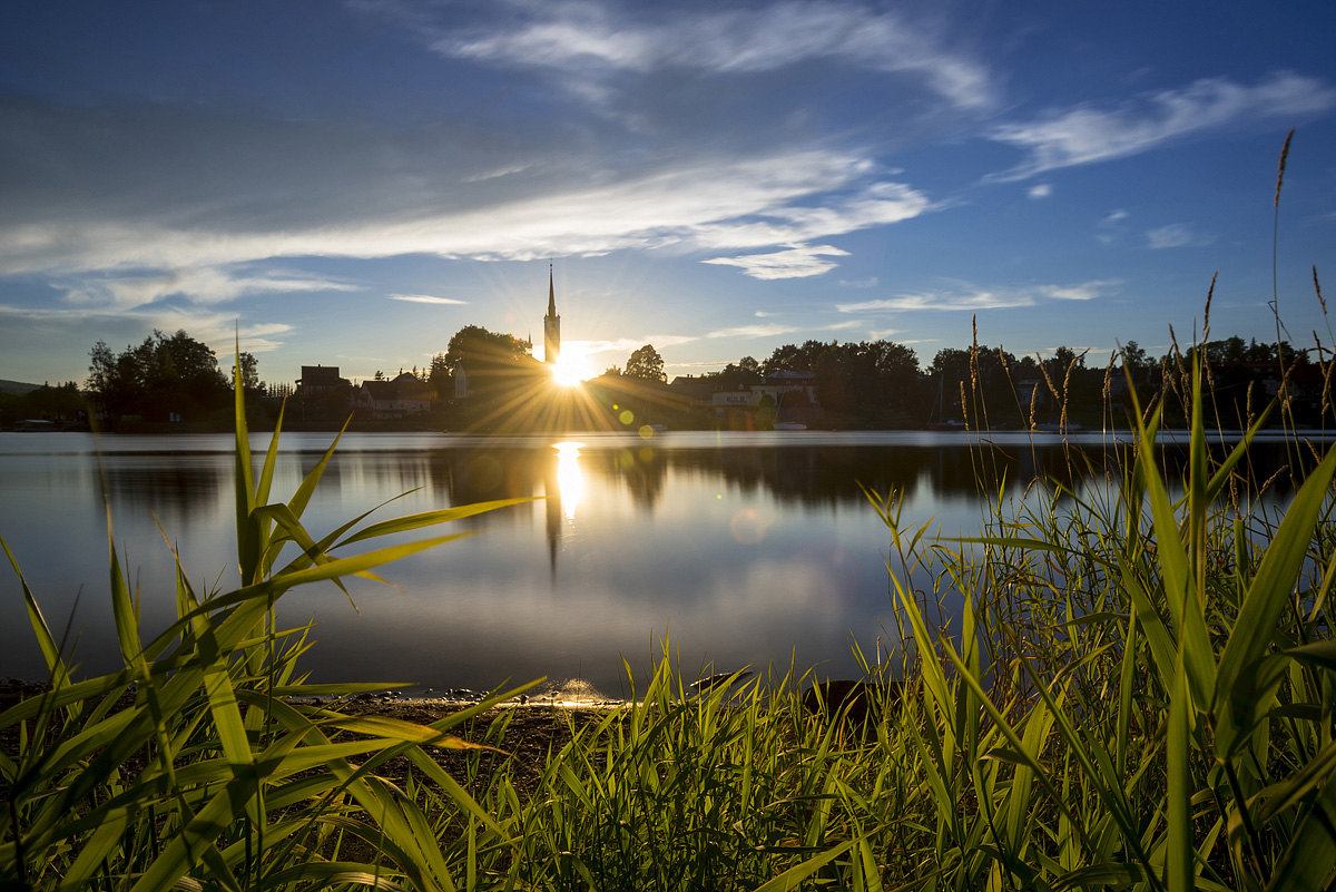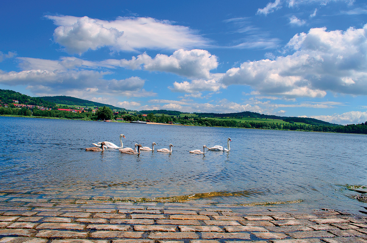 Černá v Pošumaví nabízí spoustu zábavy pro vodní sportovce, cyklisty, rodiny s dětmi a rybáře, ale také nádherné vyhlídky na Lipenské jezero a Smrčinu (1.338 m), zrcadlící se na jeho hladině. Oblíbená rekreační obec leží v okresu Český Krumlov na severním břehu Lipna v jeho nejširší části mezi Frymburkem a Horní Planou. Dominantou obce je barokní, novorománsky upravený kostel Neposkvrněného početí Panny Marie z konce 18. století. U obce leží ložiska grafitu, těžba tuhy a rašeliny tu začala už v 19. století a o sto let později patřily zdejší tuhové závody k největším exportérům grafitu na světě. Dnes se můžete projít po naučné stezce je grafitové štole Josef anebo se podívat na uměle vyhloubené jeskyně v Muckovských vápencových lomech. Podobně proslulý býval knížecí schwarzenberský pivovar.