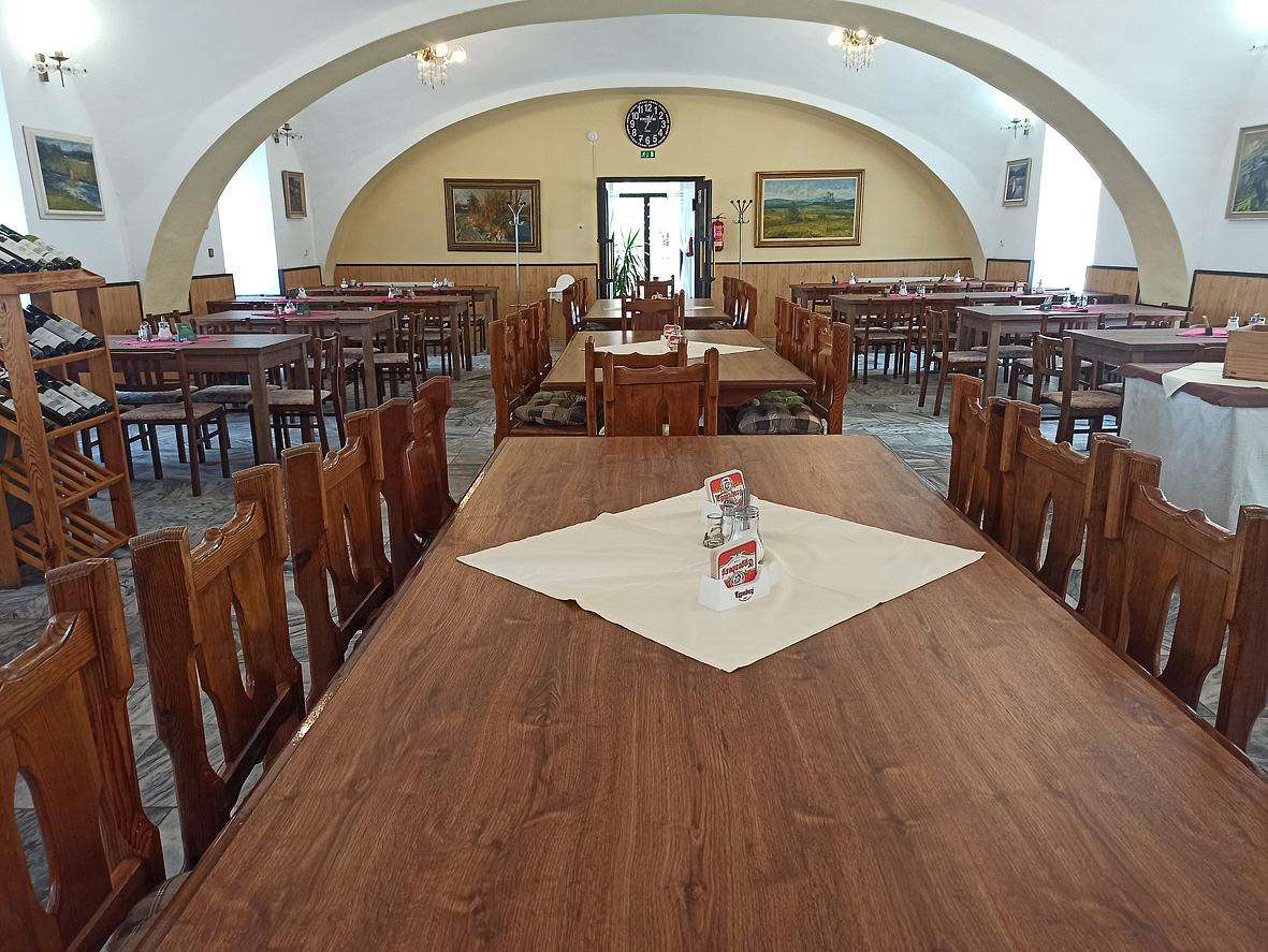 formou bufetu nebo v případě nižší obsazenosti 3chodové menu, nápoje za poplatek