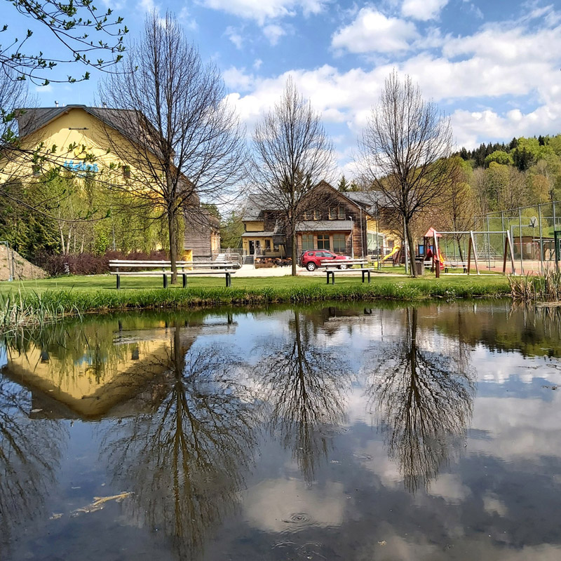 hotel se nachází uprostřed klidného prostředí Jeseníků, v malebné obci Lipová-Lázně