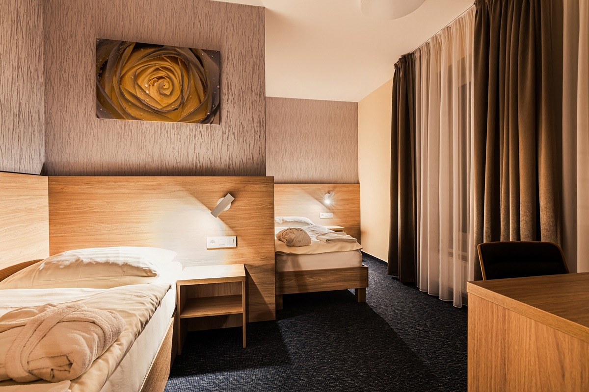 TV sat (na vyžádání), fén, trezor, wi-fi připojení k internetu, v pokojích typu Superior: minilednička, sada na kávu /čaj