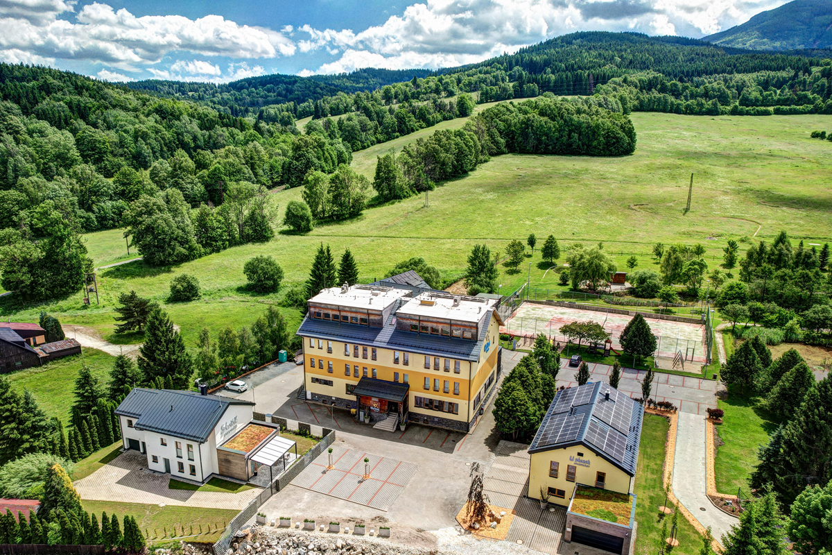 hotel se nachází uprostřed klidného prostředí Jeseníků, v malebné obci Lipová-Lázně
