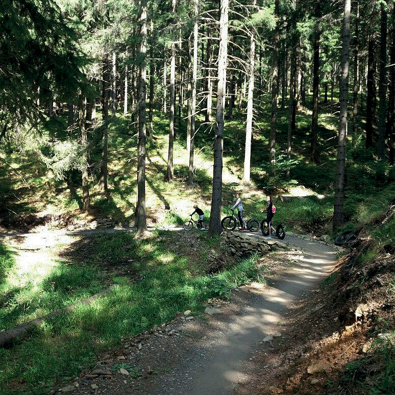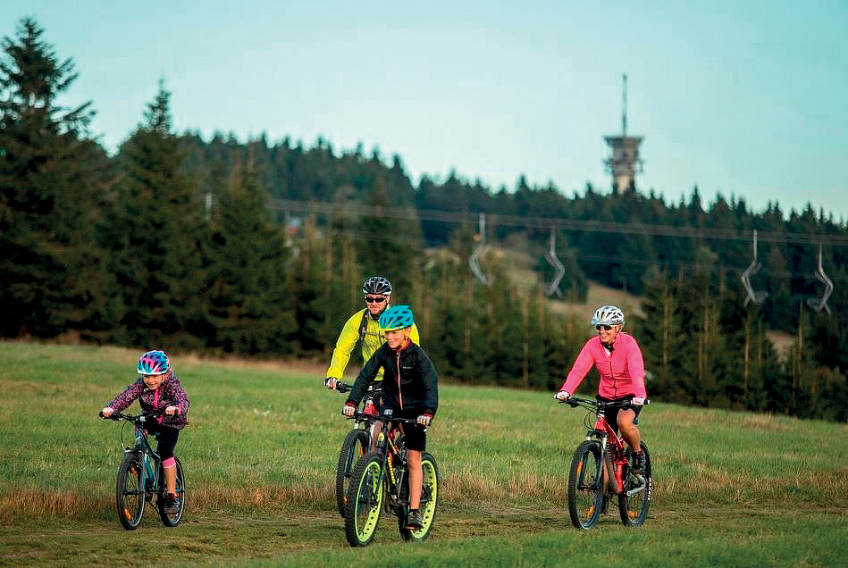 Klínovec, největší lyžařský areál v Krušných horách, ležící pouhých 145 km od Prahy, 100 km od Plzně a 20 km od Karlových Varů, má mnohé co nabídnout i v létě. Areál nabízí 30 km cyklotrailů čtyř obtížností od nejlehčích po ty náročnější. Nechybí ani půjčovna kol a kompletní zázemí. Lehké stezky jsou vhodné i pro začínající cyklisty a děti. Obzvláště zábavné jsou sjezdy na obřích terénních koloběžkách. Rozcvičit se navíc můžete na pumptracku přímo u vrcholu Klínovce. Každý jistě ocení, že celý areál je jako jediný v ČR kompletně obsluhován lanovkou. Cestou nahoru si tedy odpočinete a jako bonus se můžete pokochat krásnými výhledy do okolí. Nová sedačková lanovka od firmy Doppelmayr je kryta typickou oranžovou bublinou, jež skýtá ochranu před případnou nepřízní počasí.