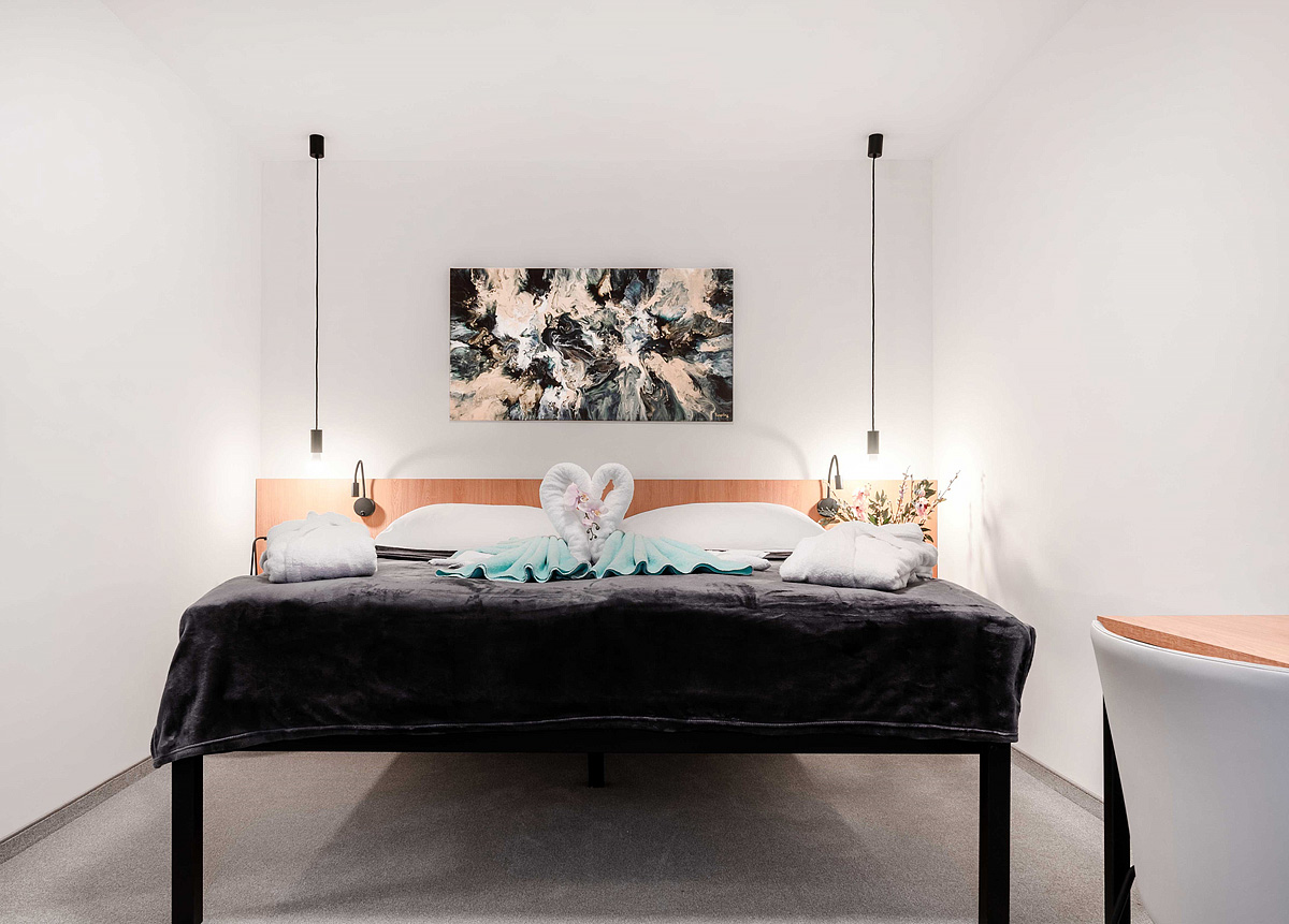 25 m² - pokoj s manželskou postelí, sociální zařízení se sprchou