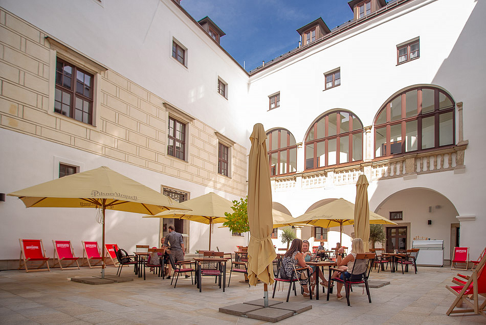 recepce, restaurace Franze Kafky, bar, venkovní posezení na nádvoří, velká zahrada se zámeckým parkem, dětský koutek, hotelový trezor, prostor pro úschovu zavazadel i kol, vyhrazené parkoviště, wi-fi připojení k internetu