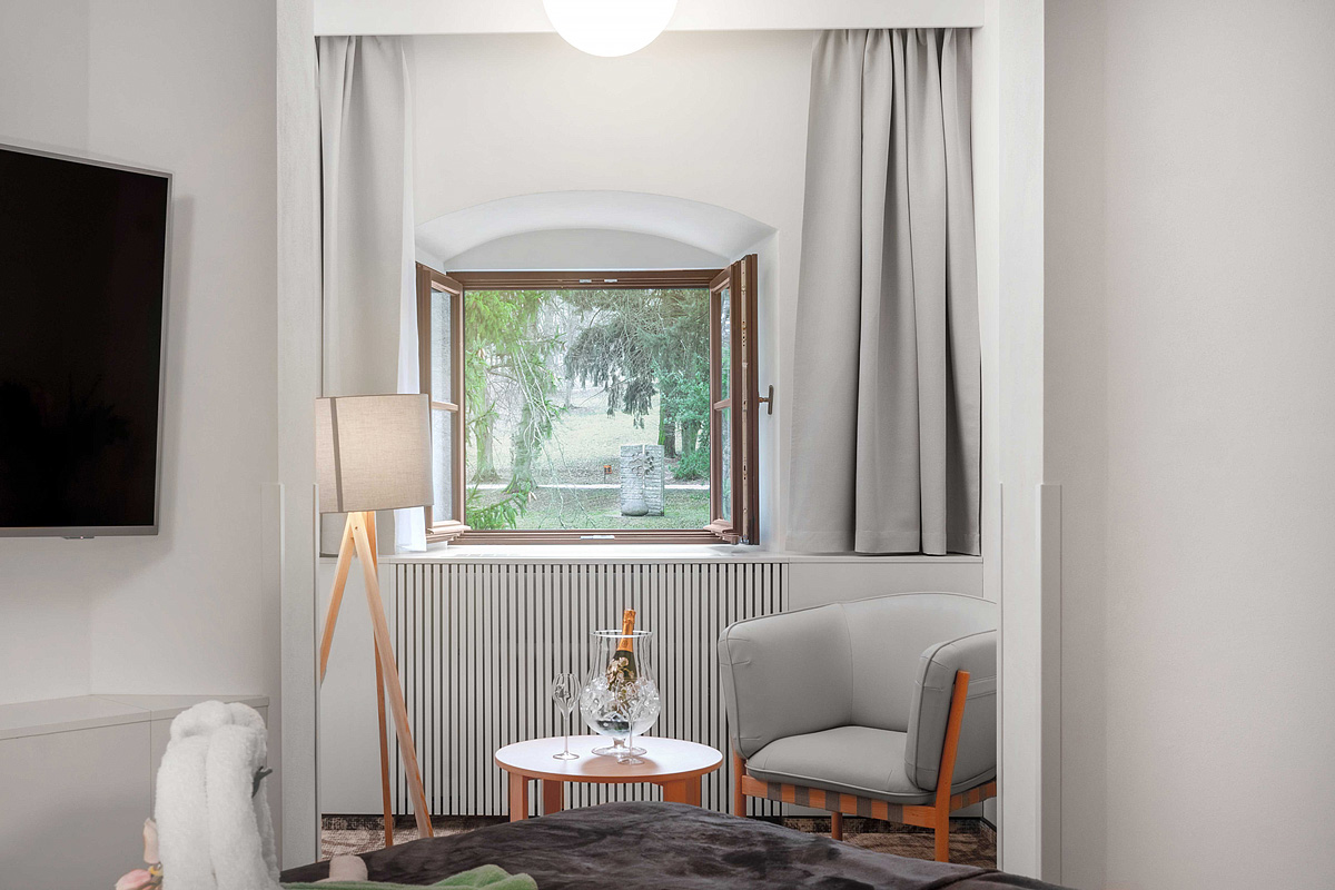 20 až 25 m² - pokoj s manželskou postelí nebo s oddělitelnými lůžky v zámecké depandanci