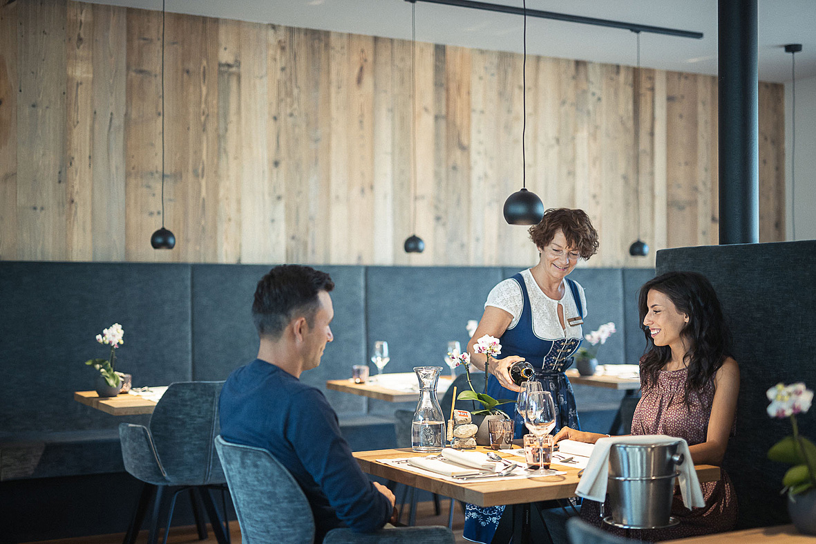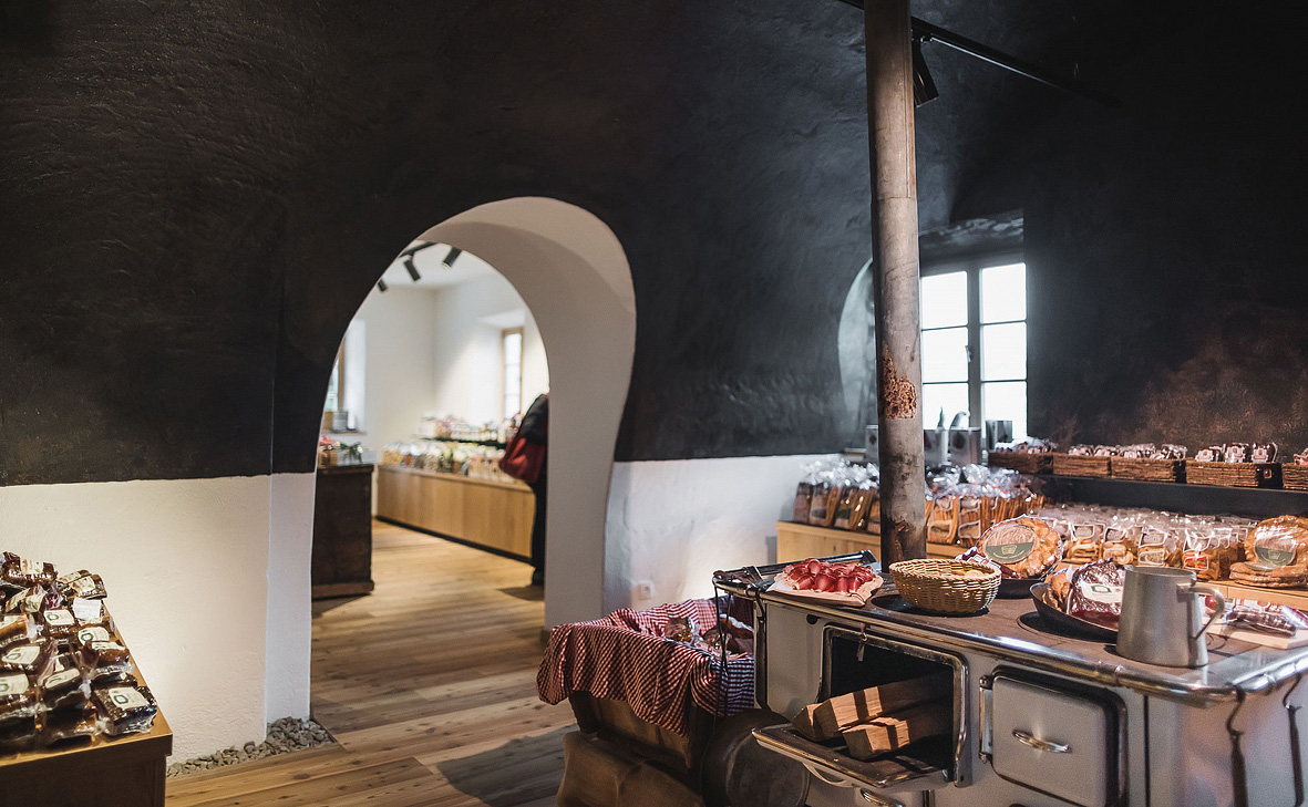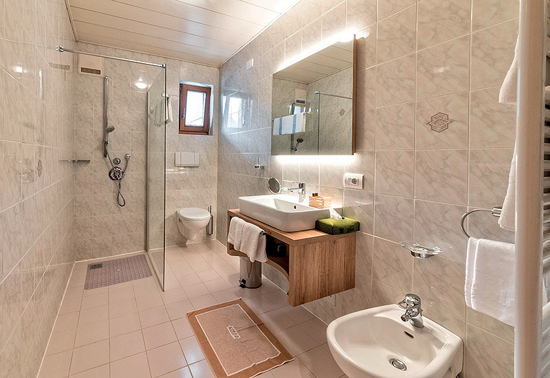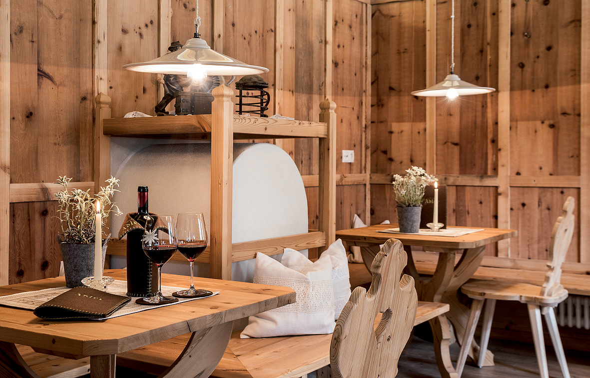 recepce / lobby s krbovými kamny a TV, restaurace vyhrazená pro hotelové hosty, bar, společenská místnost s TV, společenská místnost, čajová místnost, sluneční terasa, dětský koutek, wi-fi připojení k internetu, úschovna jízdních kol, výtah, vyhrazené parkoviště, obchod se suvenýry, obchod s tyrolskými uzeninami