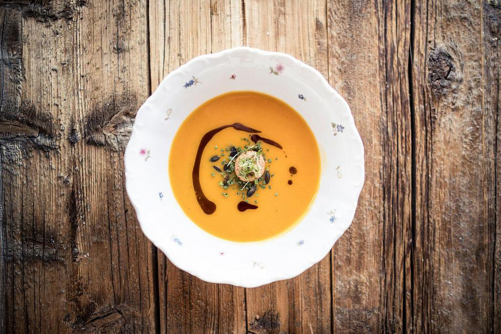 servírované menu s výběrem ze 2 teplých předkrmů a 2 hlavních jídel s přílohou, servírovaný dezert či sýrový talíř, salátový bufet, nápoje za poplatek