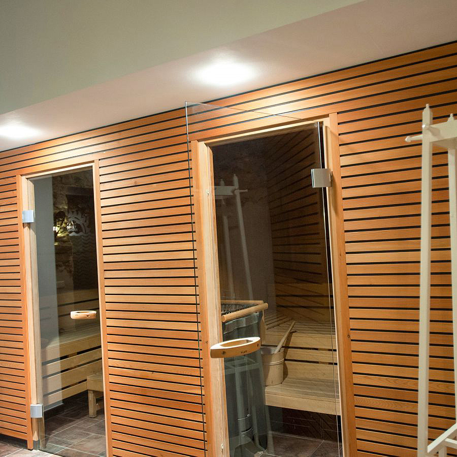 bazén 11 x 5 m s vířivkou, umělým vodopádem a lehátky, sauna#, bio sauna#, pára#, infrakabina#, relaxační koutek s lehátky#, posilovna#, masáže#*, stolní fotbal; služby označené # mohou využívat osoby až od 18 let