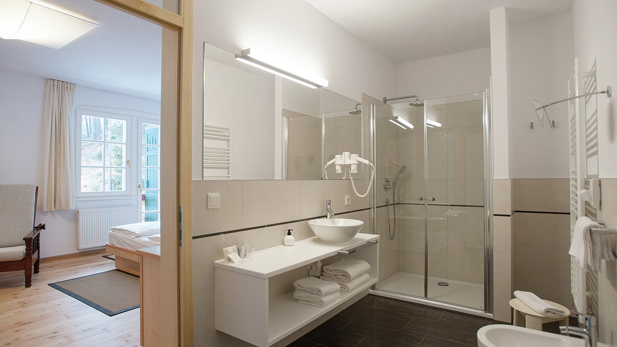 25 až 28 m² - pokoj s manželskou postelí či 2 samostatnými lůžky a případně s 1 či 2 dalšími samostatnými lůžky, sociální zařízení se sprchou či vanou