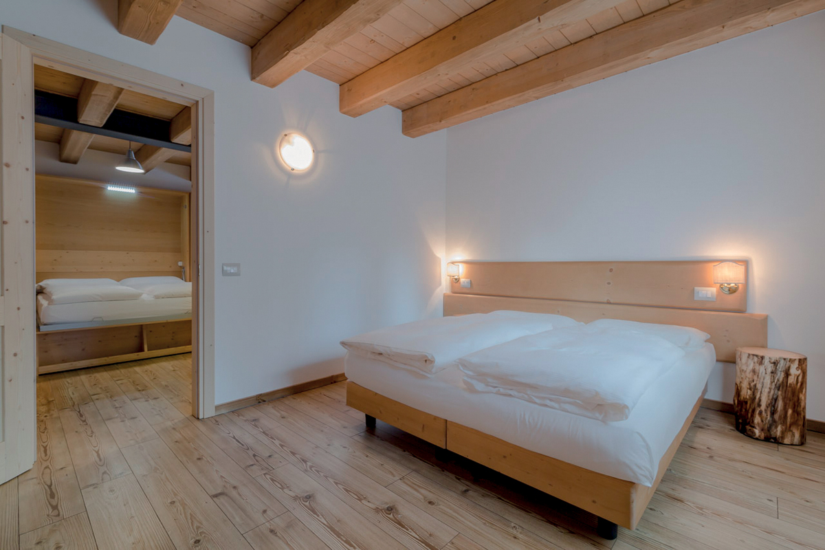 45 až 58 m² - 1 ložnice s manželskou postelí či 2 samostatnými lůžky, obývací pokoj s kuchyňským koutem a rozkládacím gaučem pro 2 osoby, sociální zařízení; některé apartmány jsou situovány v suterénu se samostatným vchodem