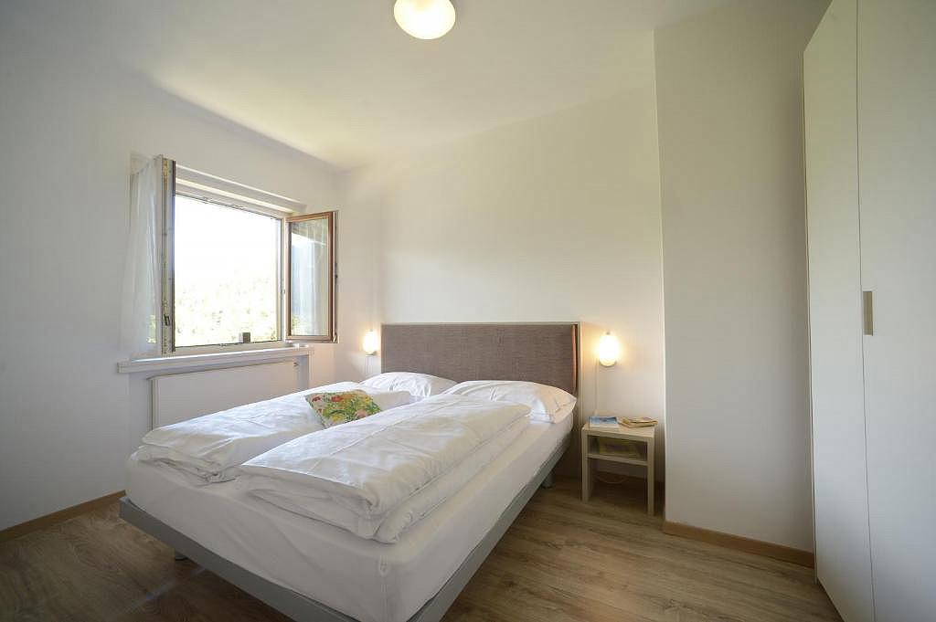 34 m² - orientace apartmánu na jih - 1 ložnice s manželskou postelí, obývací pokoj s kuchyňským koutem a manželskou postelí (u 1 apartmánu palanda), sociální zařízení, balkon či vstup na předzahrádku společnou pro více apartmánů