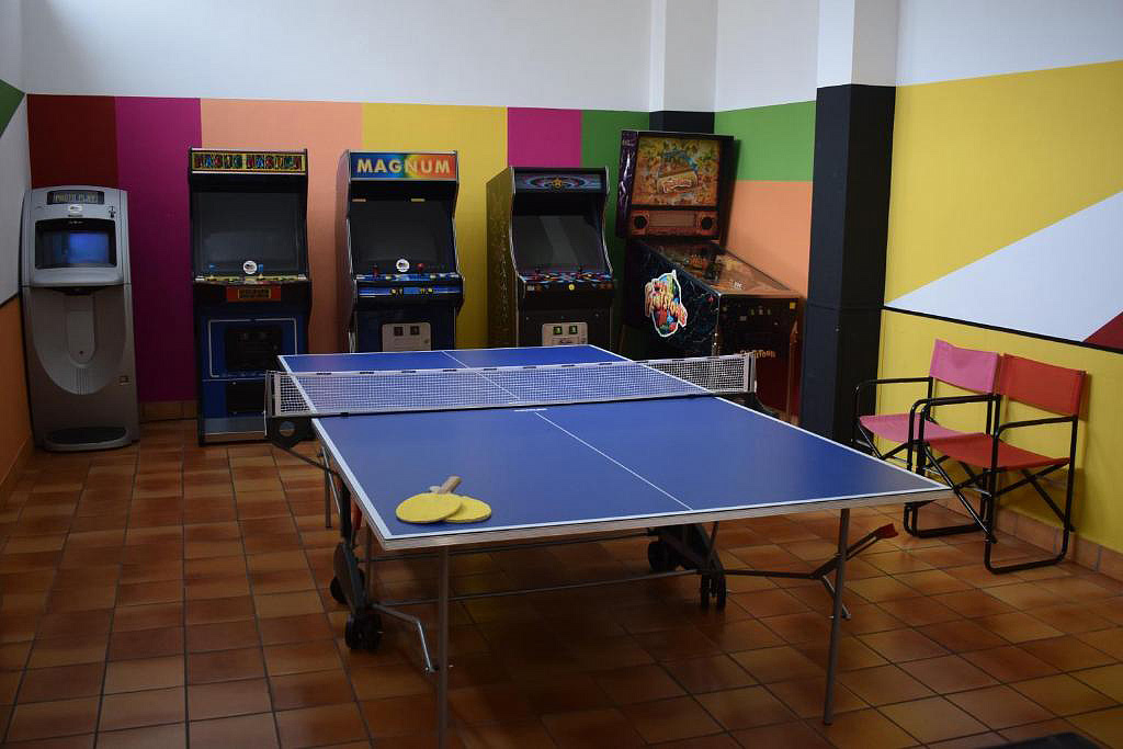 bazén (8 x 8 m), sauna#, malá posilovna#, stolní tenis, stolní fotbal*; služby označené # mohou využívat jen osoby od 16 let