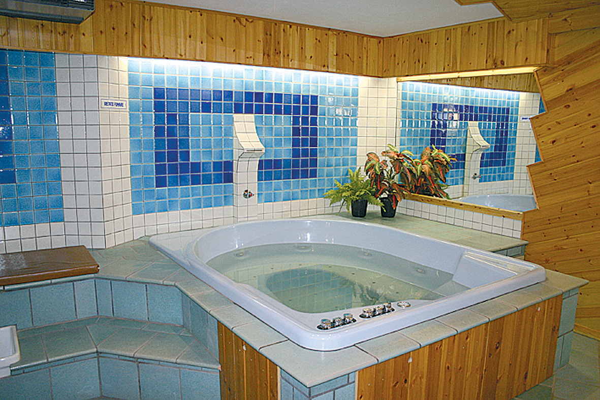 sauna, multifunkční sprcha, malý relaxační koutek s lehátky, 3 posilovací stroje
