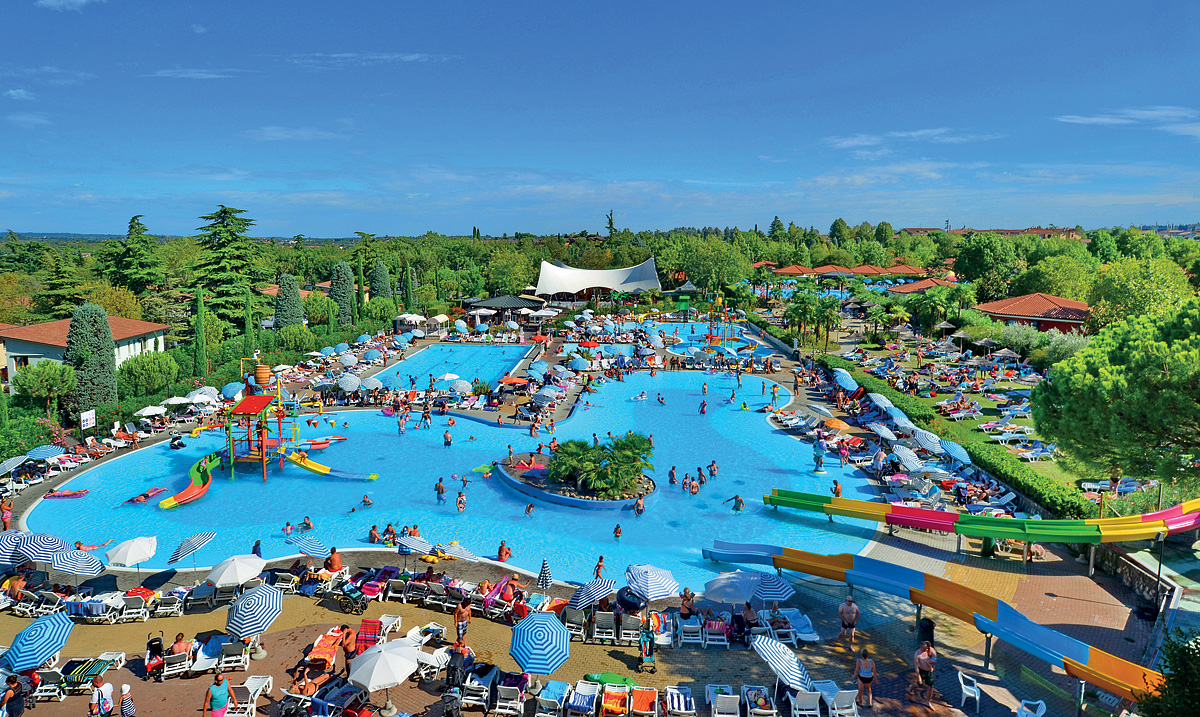 recepce, bar, kavárna, 4x restaurace, trezor na recepci, bankomat, sluneční terasa, zahrada, dětské hřiště, miniklub (od 4 do 12 let), animace pro děti i dospělé, úschovna zavazadel, supermarket, pračka* / sušička*, wi-fi připojení k internetu - nově je zdarma, vláček* do Peschiera del Garda, vyhrazené parkoviště / nabíjecí stanice* (pomalé do 22 kW)