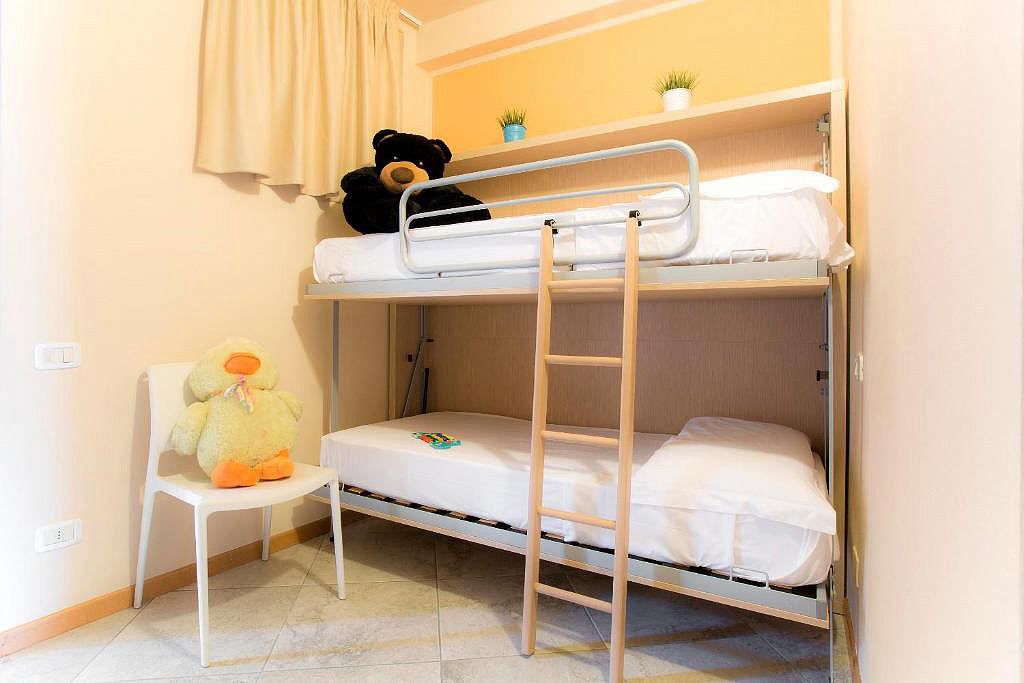 22m² - pokoj s manželskou postelí, obývací pokoj s uzavřeným kuchyňským koutem a rozkládacím gaučem na palandu, sociální zařízení se sprchou, balkon s výhledem na jezero; za poplatek možnost využívání kuchyňského koutu