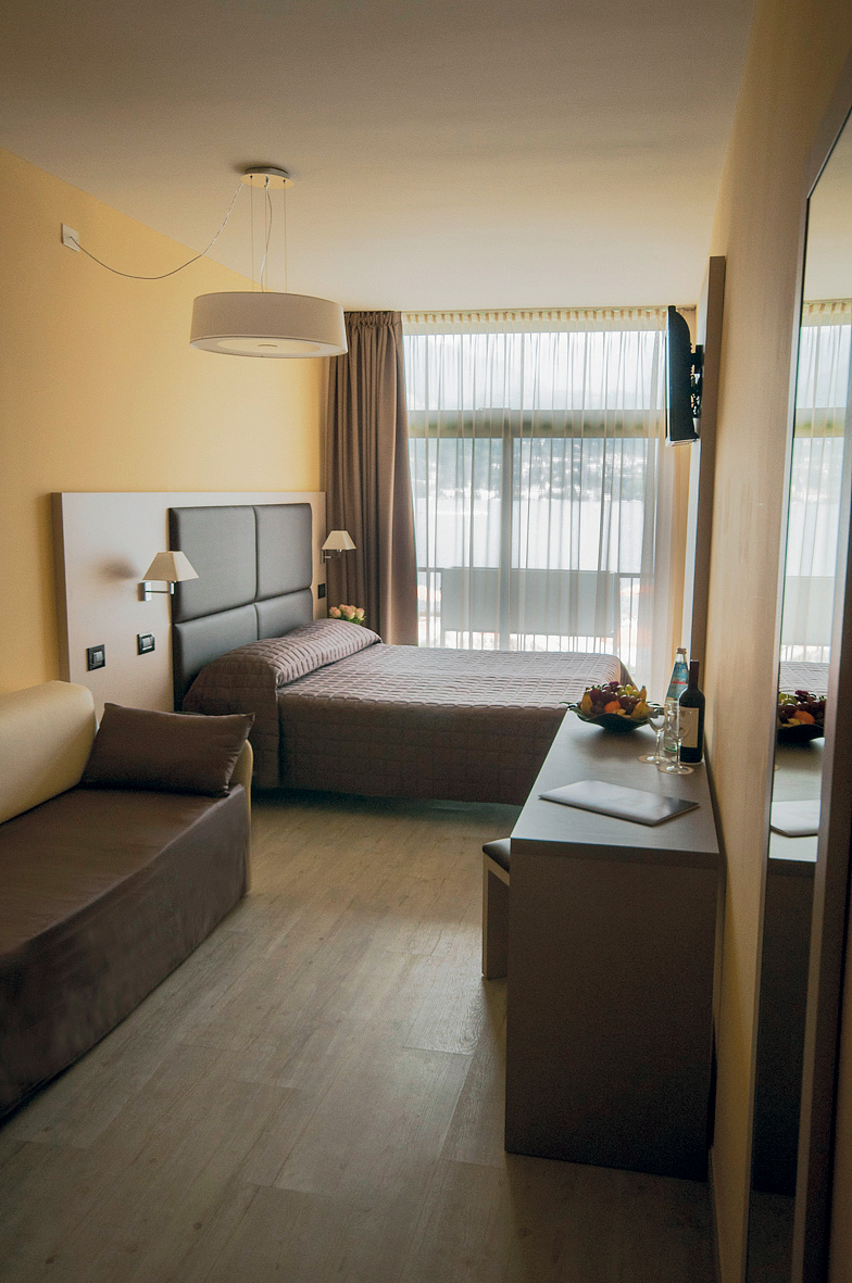 23 m² - zrenovovaný pokoj s manželskou postelí či 2 samostatnými lůžky, sociální zařízení se sprchou; 3. a 4. lůžko formou rozkládacího gauče, zpravidla balkon či terasa, čelní či boční výhled na jezero; maximální obsazenost pokoje jsou 2 dospělé osoby a 2 děti do nedovršených 14 let