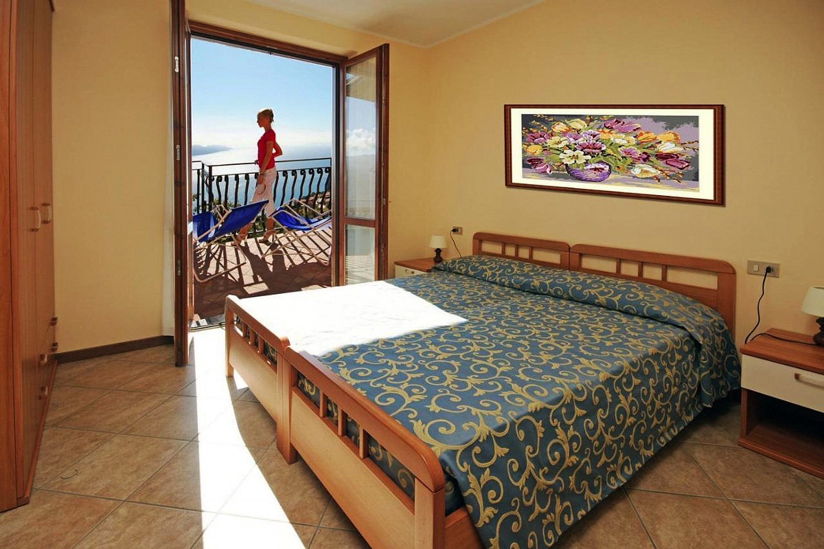 1 ložnice s manželskou postelí či 2 samostatnými lůžky, obývací pokoj s kuchyňským koutem a rozkládacím gaučem pro 2 osoby, sociální zařízení se sprchou, balkon, terasa či zahrádka, výhled na jezero