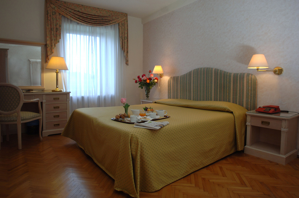 14 až 18 m² - pokoj s manželskou postelí či 2 samostatnými lůžky, sociální zařízení se sprchou, výhled na jezero; zdarma vstup do wellness centra "BellaVita", župan, pantofle a osuška