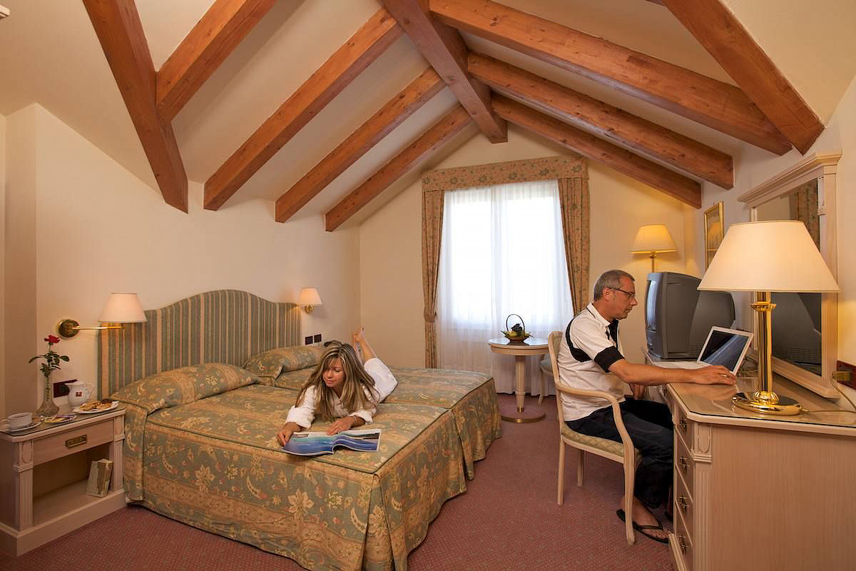 14 až 19 m² - pokoj s manželskou postelí či 2 samostatnými lůžky, sociální zařízení se sprchou; zdarma vstup do wellness centra "BellaVita", župan, pantofle a osuška