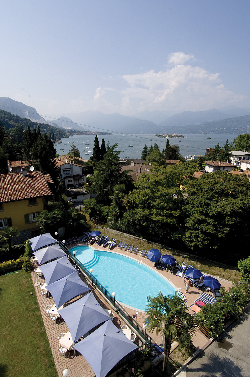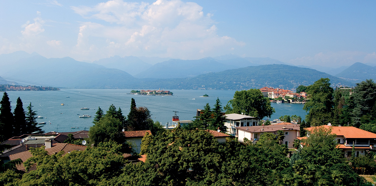 ideální poloha v blízkosti jezera i přístavu s nabídkou lodních výletů na Borromejské ostrovy