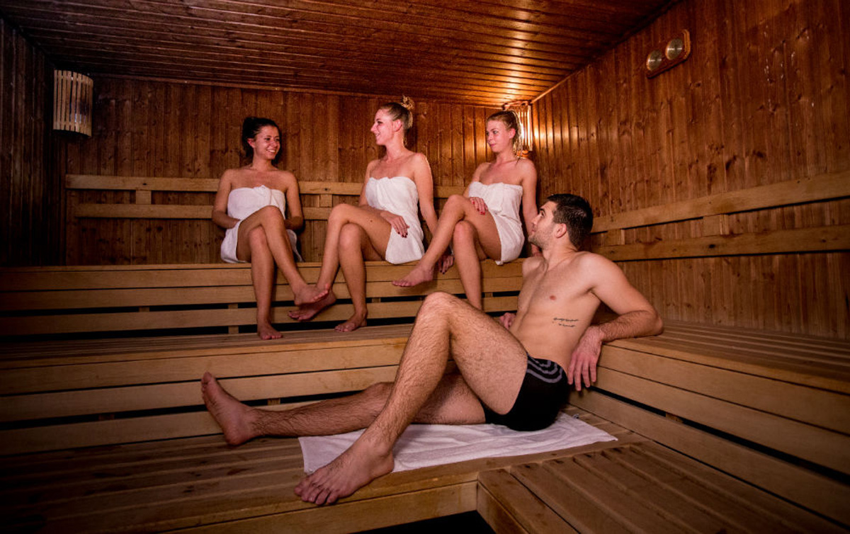 Saunový svět v přízemí hotelu nabízí finskou saunu, infrasaunu, aroma kabiny, parní kabiny a tropickou sprchu.