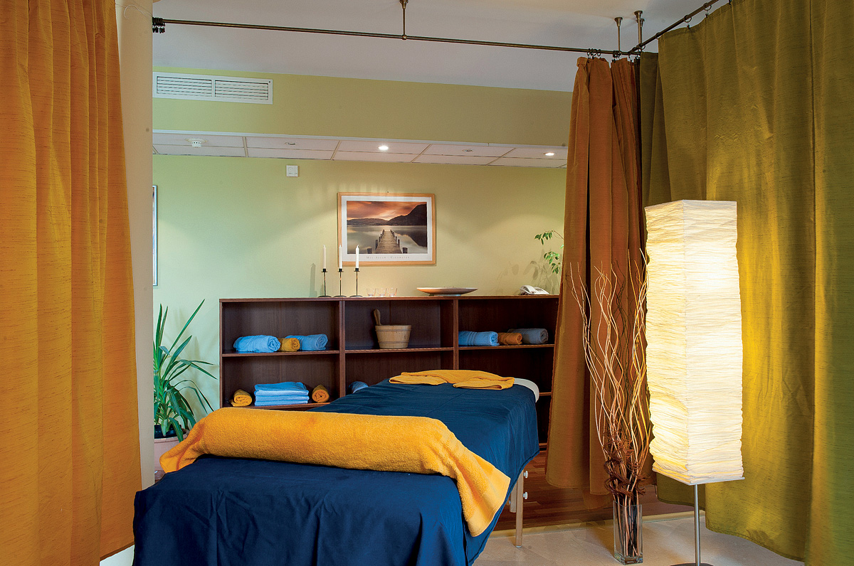 krytý bazén, vířivka, pára, sauna, bio sauna, relaxační koutek, menší posilovna, masáže*, kosmetické služby*