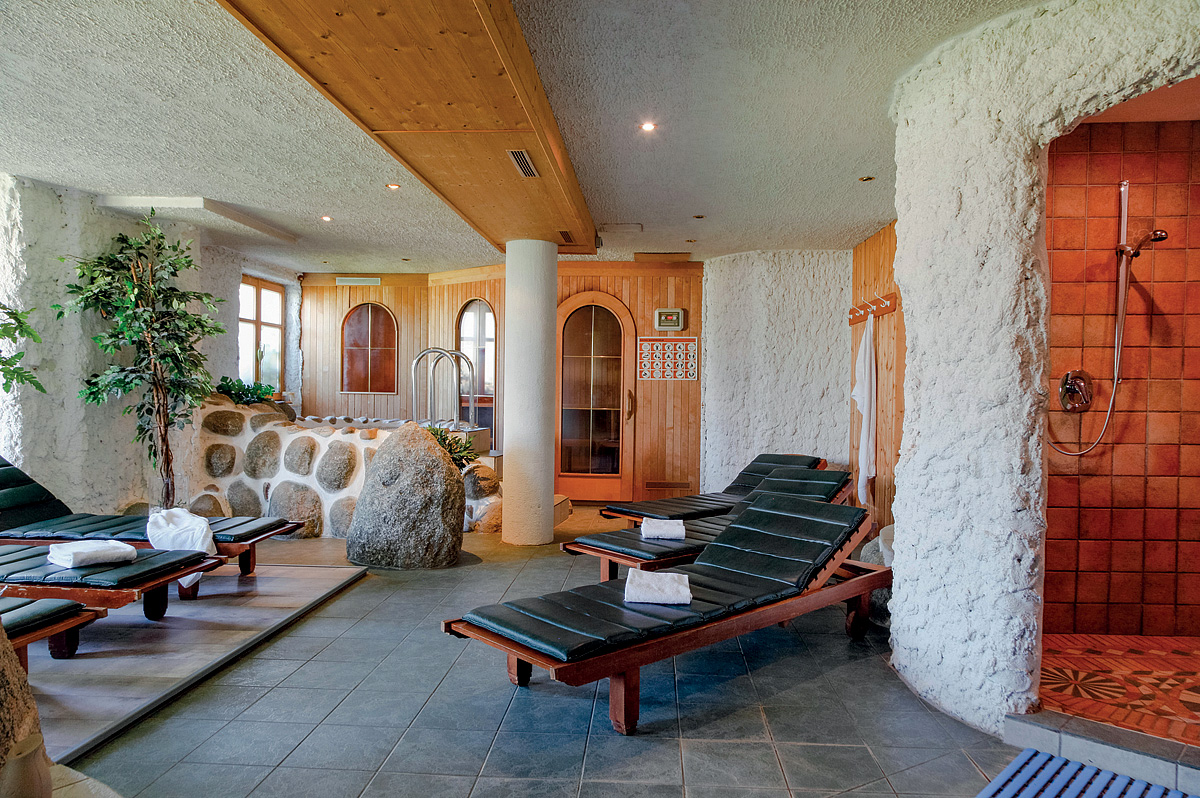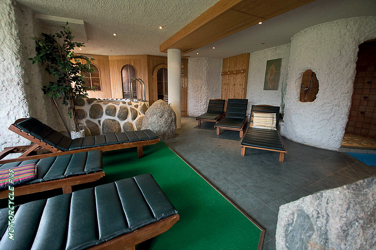 sauna, relaxační koutek s lehátky, horizontální solárium*, masáže*, kosmetické služby*, posilovna, biliár*, stolní tenis, stolní fotbal*