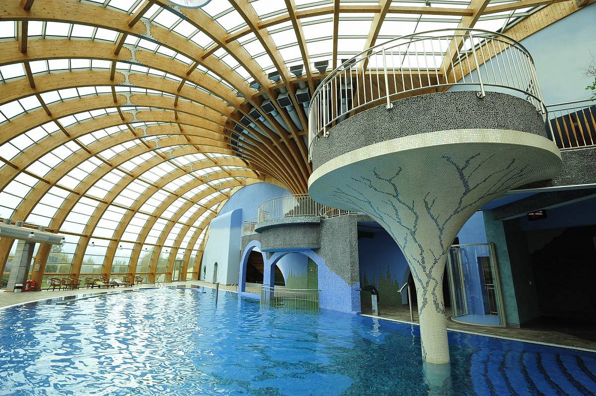 Aquapark (rozloha 600 m²) tvoří bazén s protiproudem, vodopádem, bublinkové masážní lavice, vodopád z horní jacuzzi, sprchový tunel, wellness zóna: relaxační lavice s vodní masáží nohou, sauny: infrasauna, parní, suchá, posilovna, kulečník*