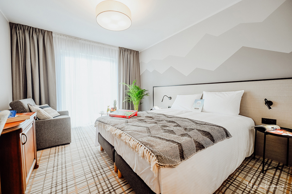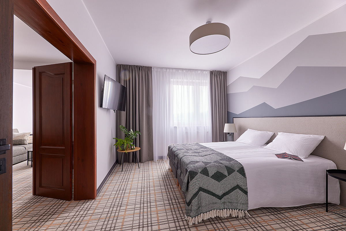 23 m², pokoj s manželskou postelí či 2 samostatnými lůžky a rozkládacím křeslem formou přistýlky (rozměry 90x200) sociální zařízení, balkón s výhledem na hory/les