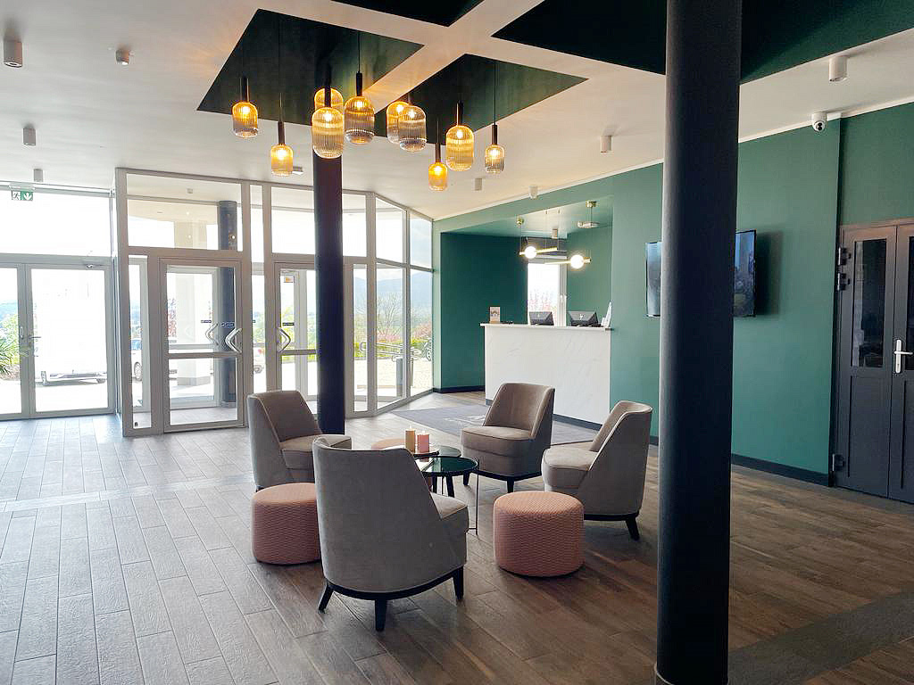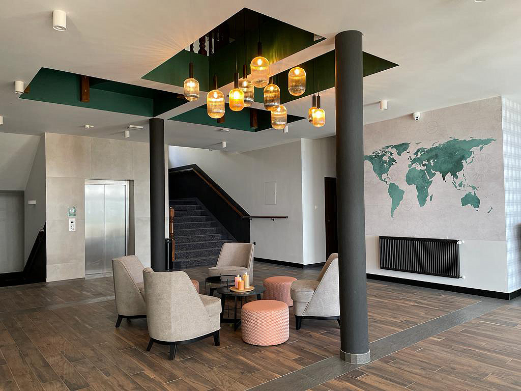 recepce, restaurace / bar, 2 x seminární místnost s projekční technikou a wi-fi připojením k internetu, úschovna zavazadel a kol, sluneční terasa s posezením, dětský koutek, dětské venkovní hřiště, výtah, wi-fi připojení k internetu, parkoviště, nabíjecí stanice pro elektromobily*
