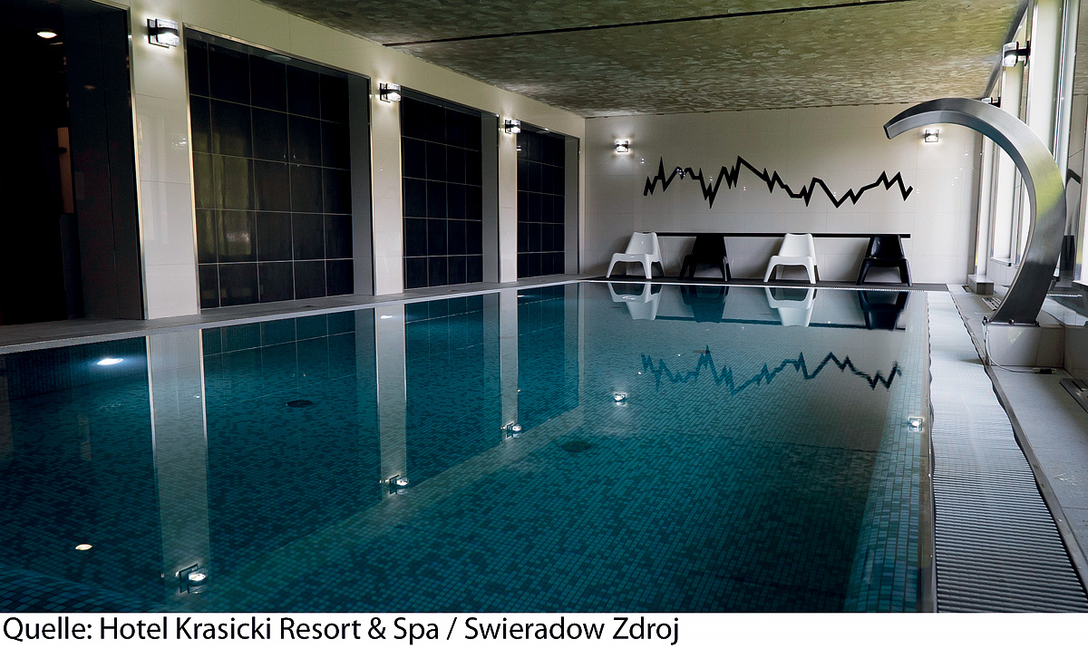 venkovní bazén 50 m², bazén 44 m², sauna, finská sauna, infrakabina, vířivka, relaxační koutek s lehátky, masáže*, kosmetické služby*, léčebné procedury* (po konzultaci s místním lékařem)