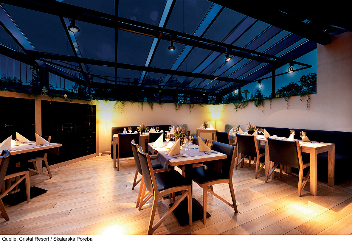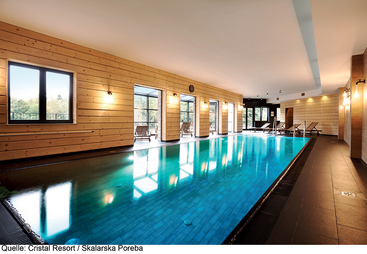 bazén 70 m², sauna, pára, venkovní vířivka, relaxační koutek s lehátky, masáže*, kosmetické služby*