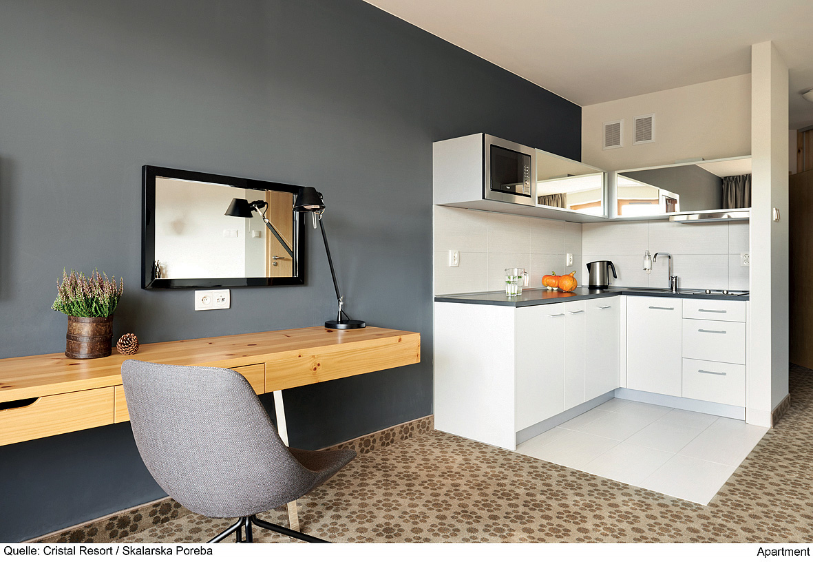 moderní apartmánový resort s pěkným wellness zázemím s bazénem