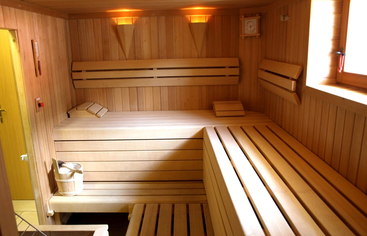 venkovní vyhřívaný bazén s termální vodou, finská sauna, pára, Kneippův chodník, relaxační koutek s lehátky