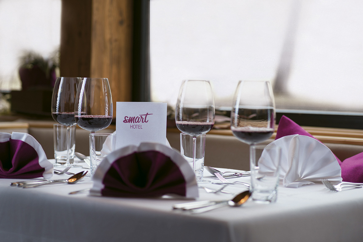 servírované 3chodové menu s výběrem z alespoň 2 hlavních jídel s přílohou, servírovaný předkrm či polévka a dezert či salát nebo večeře formou bufetu; nápoje za poplatek
