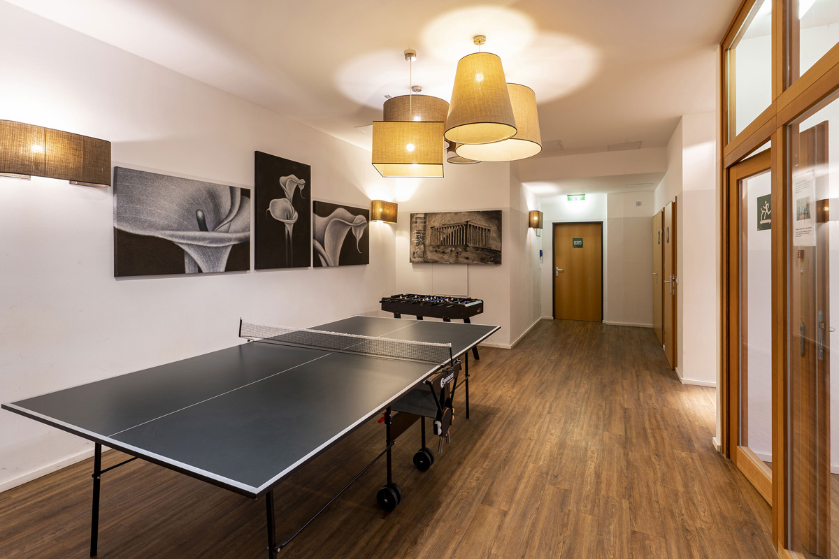 bazén 12 x 5 m; sauna*, pára*, infrakabina*, relaxační koutek s lehátky, půjčovna jízdních kol*, kajaků* a paddleboardů*, posilovna, stolní tenis