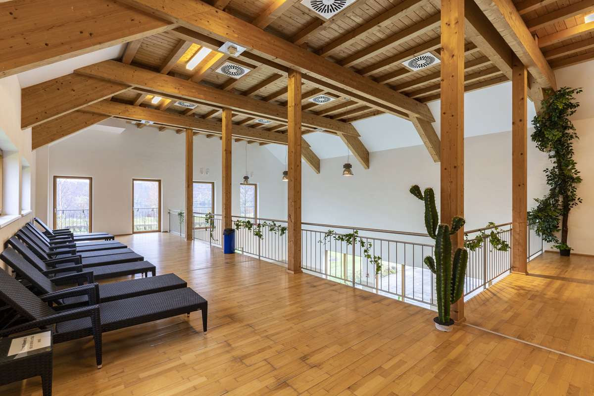 • pěkné wellness zázemí v centrální budově včetně krytého bazénu