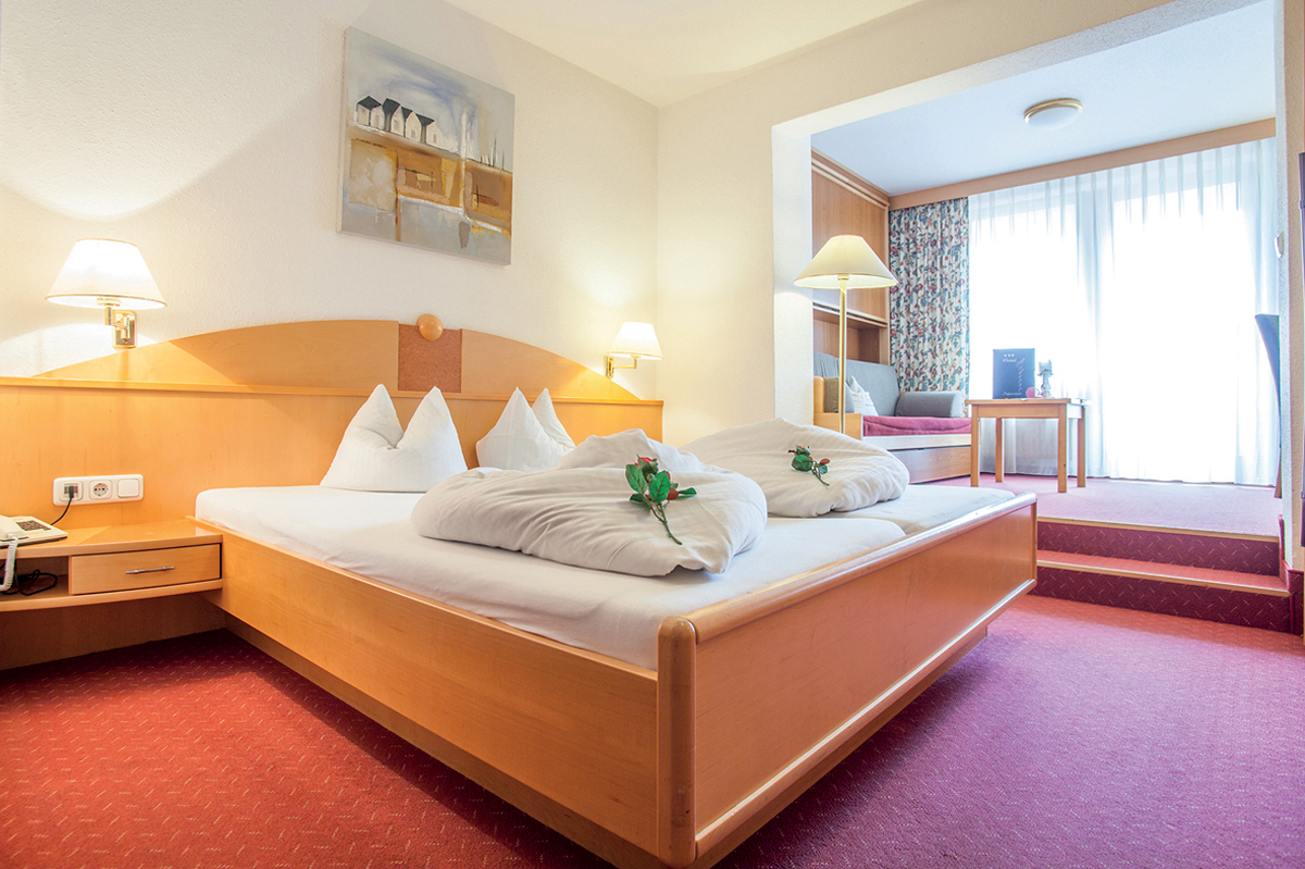 25 m² - pokoj s manželskou postelí a případně dalším samostatným lůžkem či rozkládacím gaučem či přistýlkou pro 1 osobu, sociální zařízení se sprchou či vanou, asi z 50% balkon