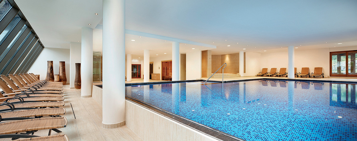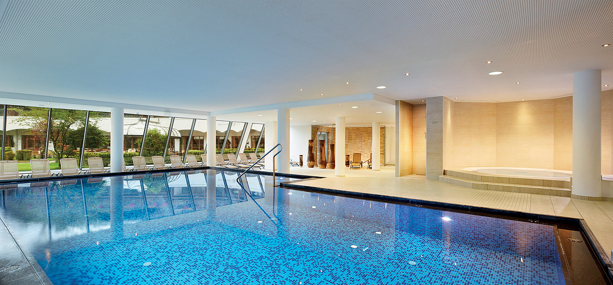 krytý bazén 60 m², venkovní bazén s lehátky a slunečníky (od května do září), vířivka, 2x finská sauna, bio sauna, pára, Kneippův chodník, zážitkové sprchy, relaxační koutek s vodními lůžky, posilovna, masáže*, kosmetické služby*