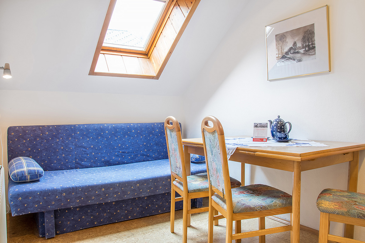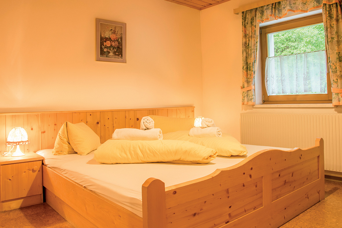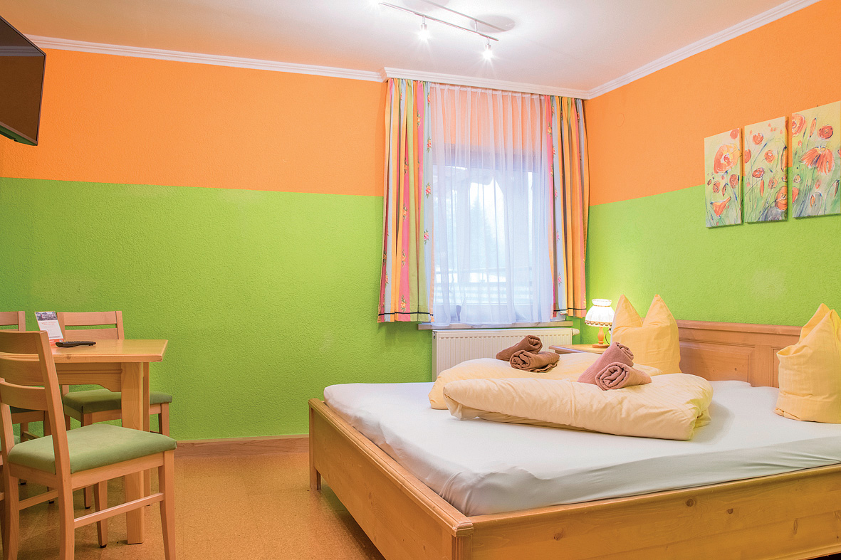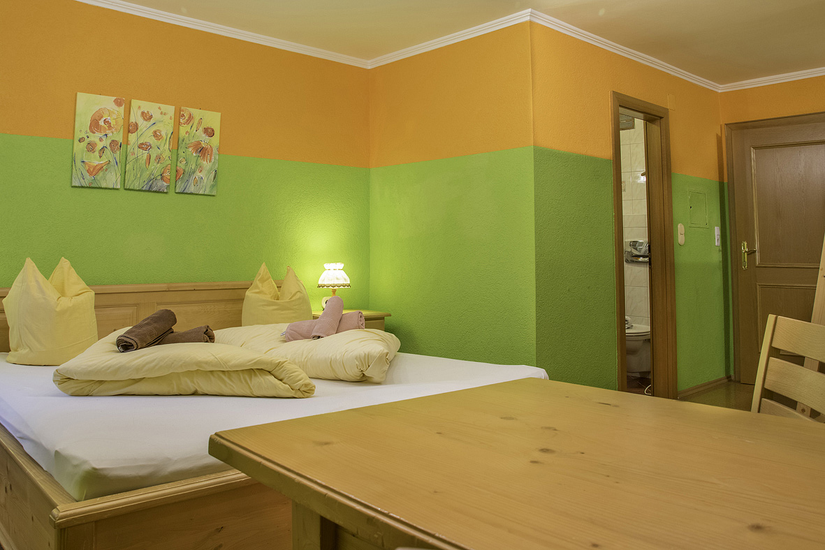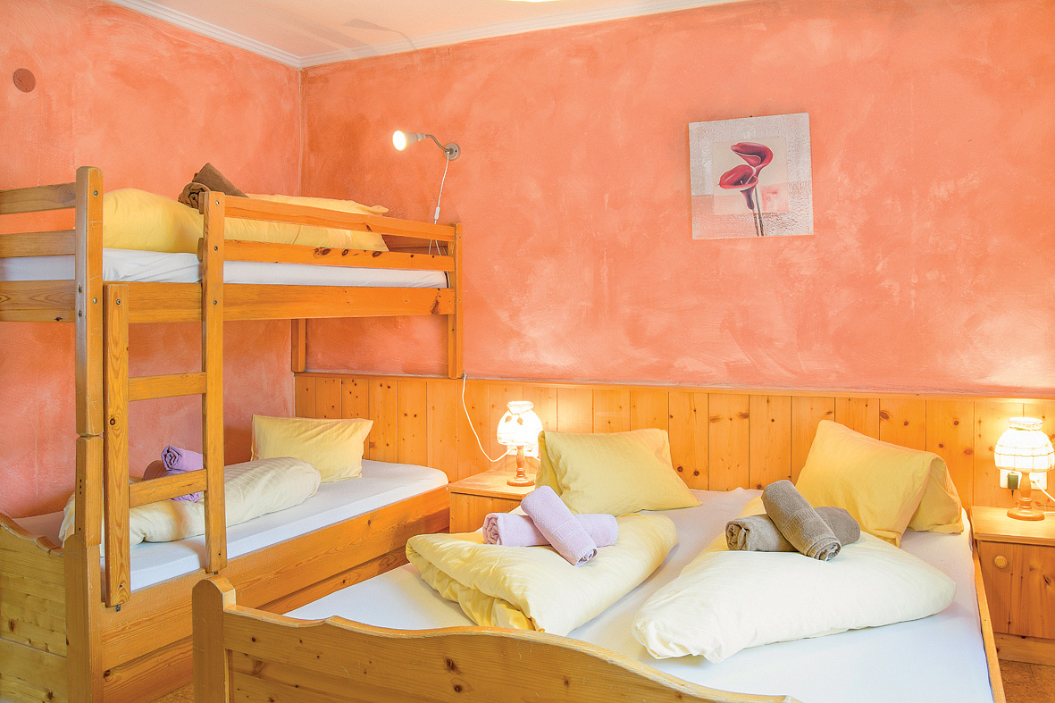 pokoj s manželskou postelí, možnost 3. a 4. lůžka formou palandy pro 1 až 2 děti do nedovršených 18 let, sociální zařízení se sprchou