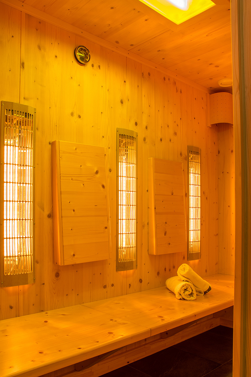 finská sauna, borovicová sauna, pára, infrakabina, Kneippův chodník, relaxační koutek s lehátky, vodní lůžka, vyhřívaná lavice, horizontální solárium*, masáže*, stolní fotbal, videohry