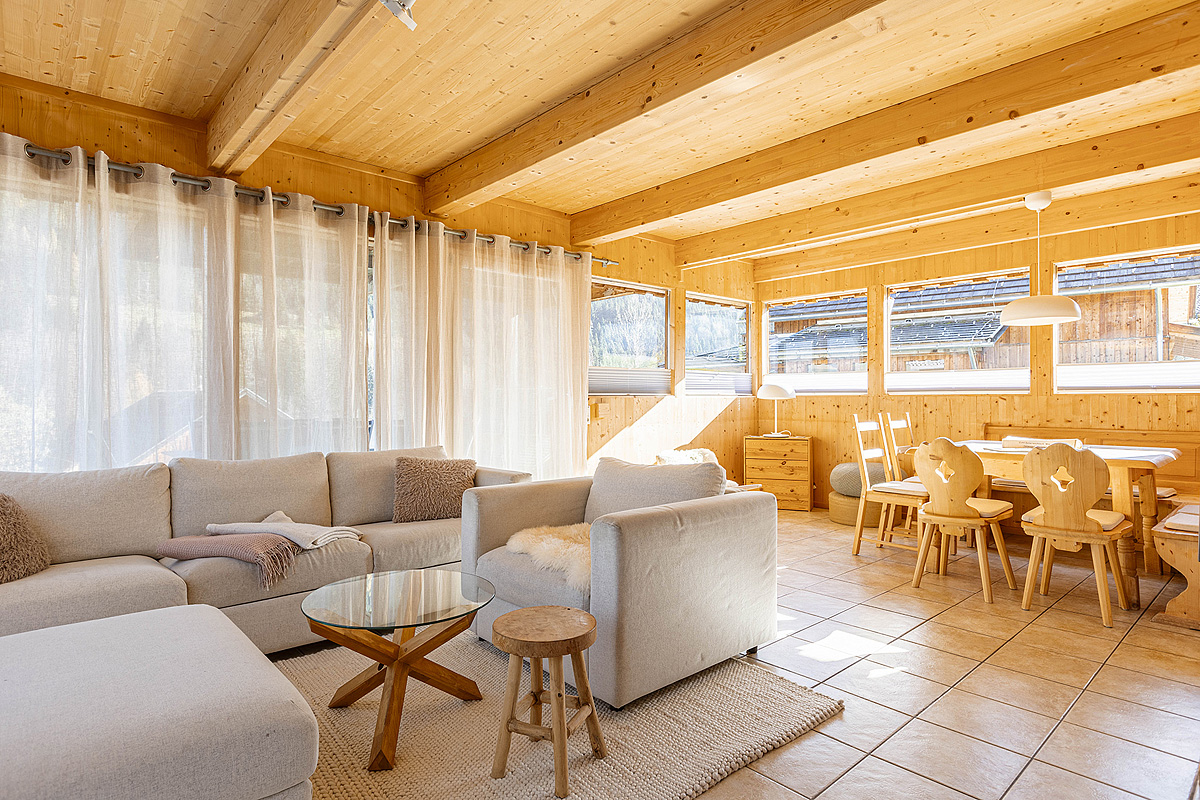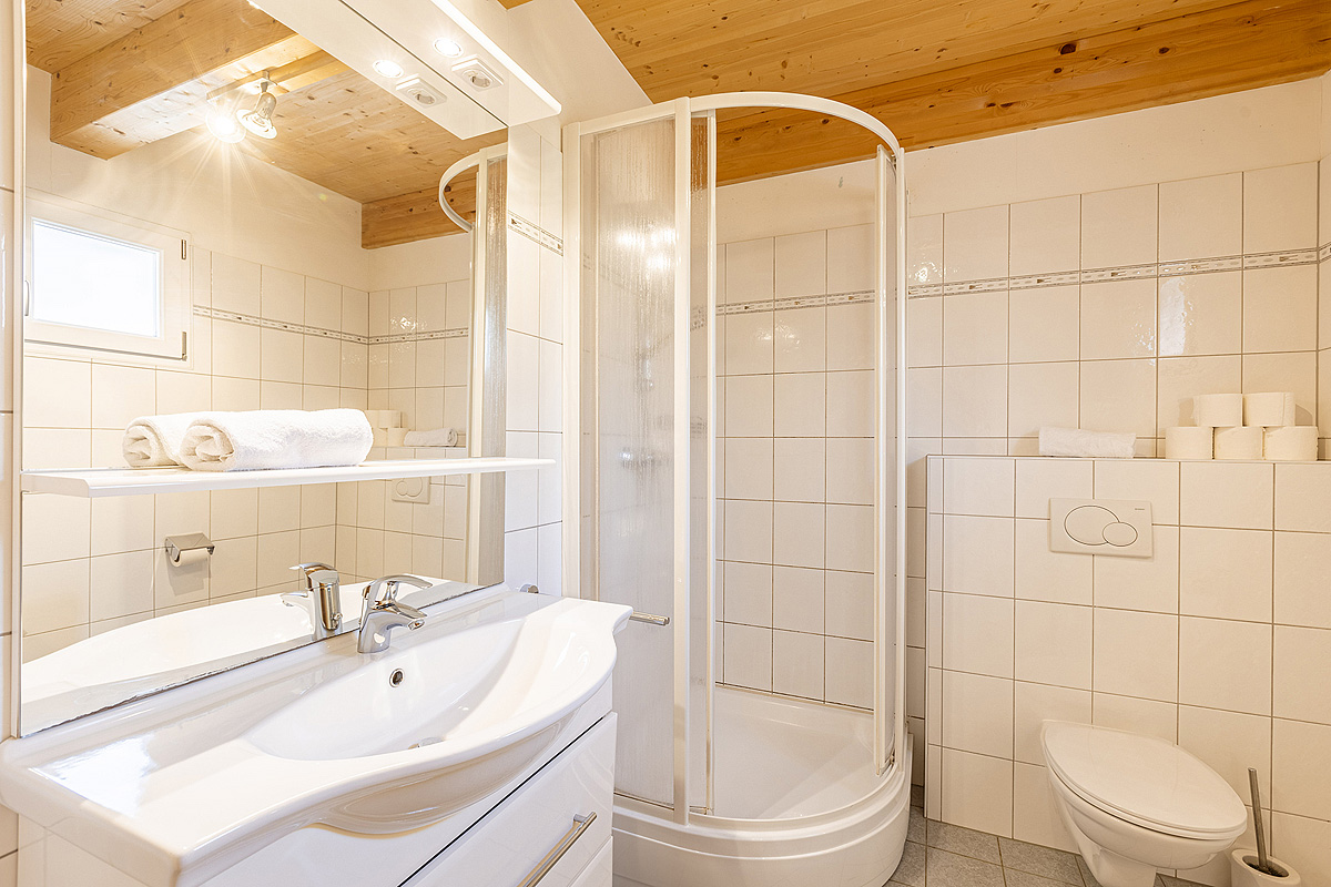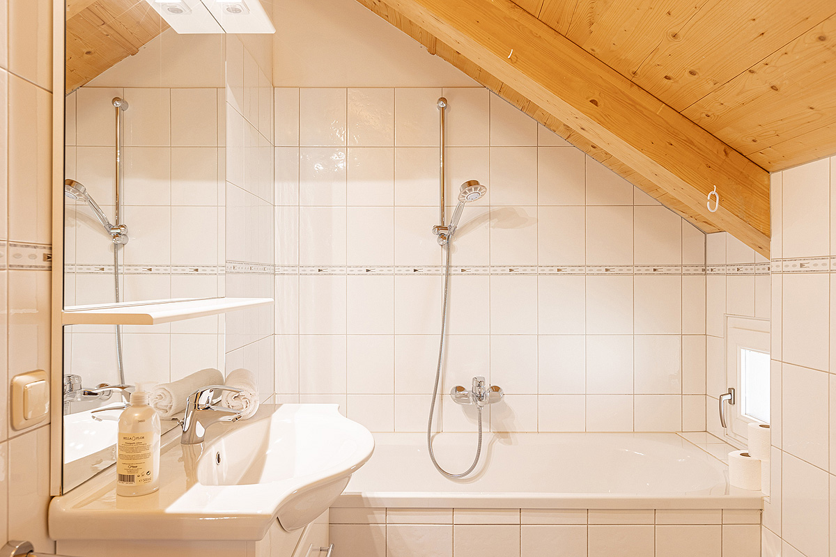 90 m² - 3 ložnice s manželskou postelí (či 2 s manželskou a 1 ložnice s 2 samostatnými lůžky), obývací pokoj s kuchyňským koutem, 2x sociální zařízení (1x s vanou a 1x se sprchou), oddělené WC, terasa