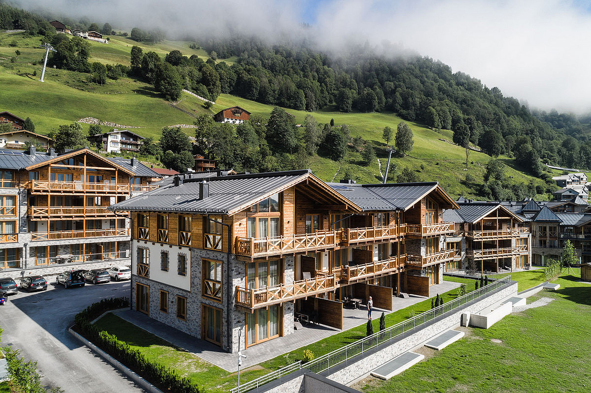 apartmány se nacházejí v resortu Das Wildkogel a v sesterském resortu Das Bramberg (ca. 300 m), níže uvedené služby se nachází v obou resortech (docházení není nutné); apartmány jsou nabízeny bez rozlišení, tedy bez konkretizace resortu, ve kterém jsou umístěny