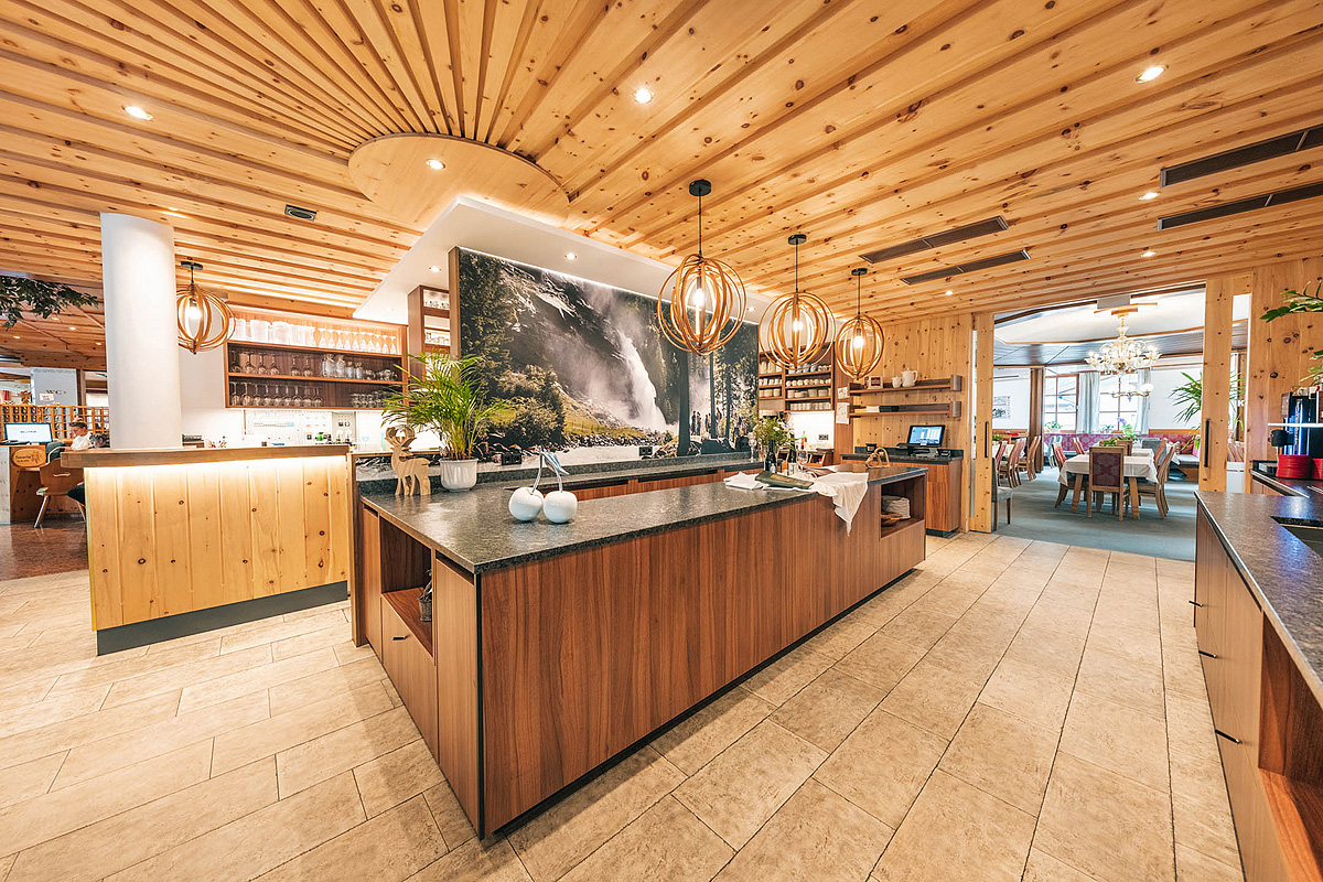 servírované 4chodové menu s výběrem hlavního jídla s přílohou, polévkový bufet, salátový bufet, zpravidla servírovaný dezert (3x týdně dezert bufet), nápoje za poplatek; 1x týdně večeře formou tématického bufetu či grilování, 1x týdně "štrůdl odpoledne"