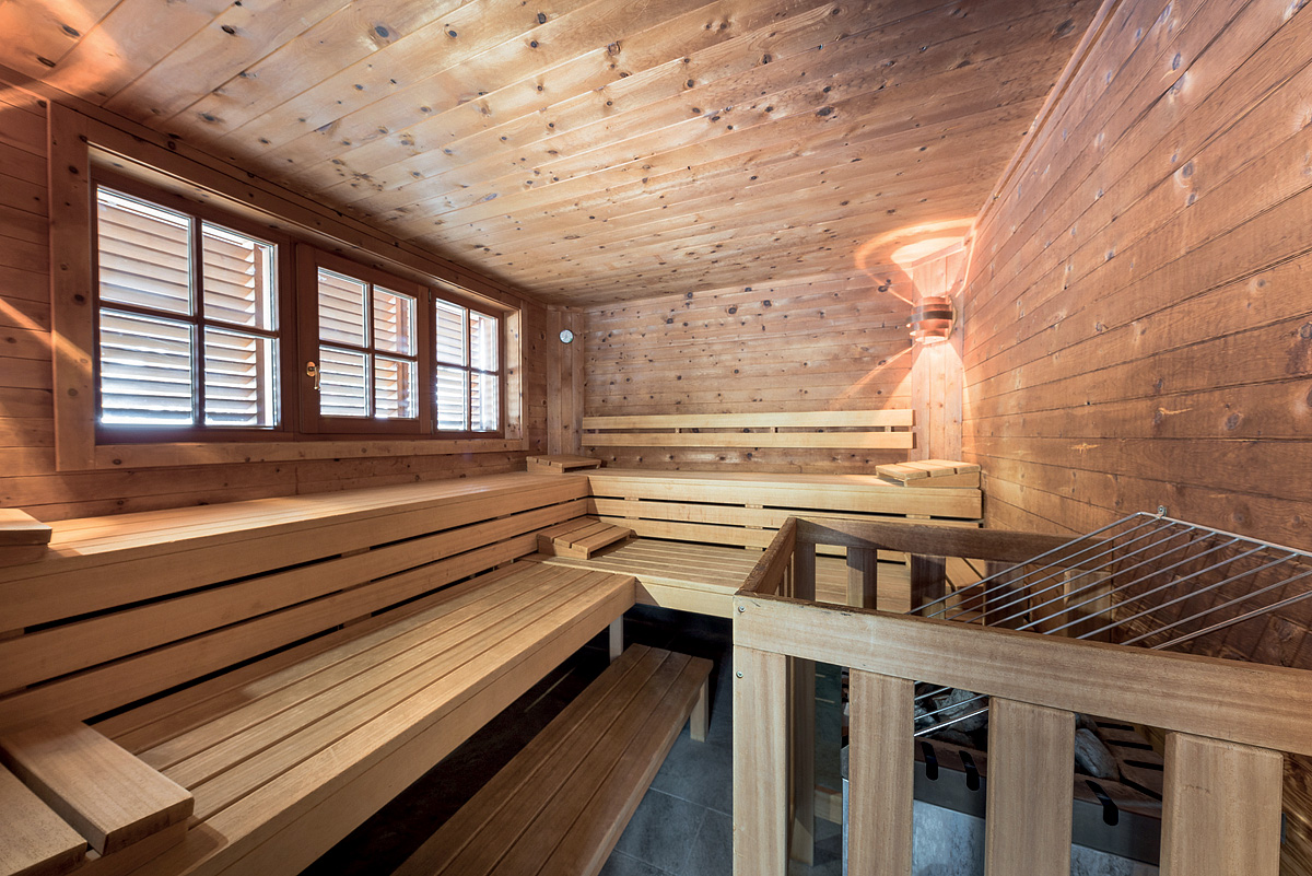 bazén 48 m² s vířivkou propojený s venkovním vyhřívaným bazénem, sauna, venkovní sauna, pára, relaxační koutek s lehátky, posilovna, stolní tenis, solárium*, masáže*