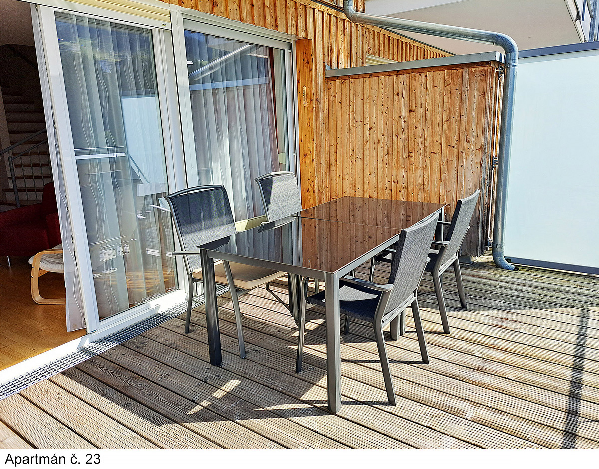 sluneční terasa s posezením, výtah, garážová stání (1 stání / apartmán resp. quadrilo 10 vždy 2x garážová stání)