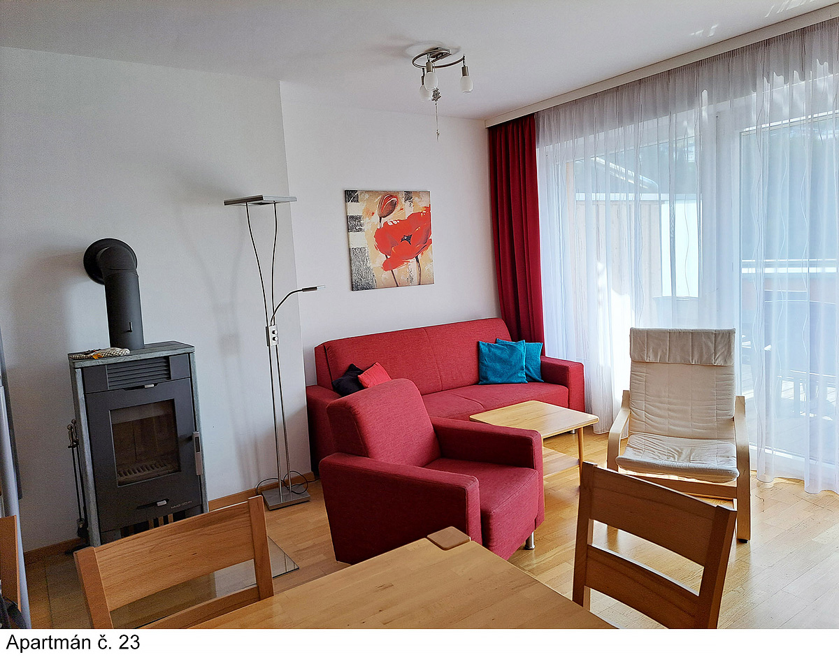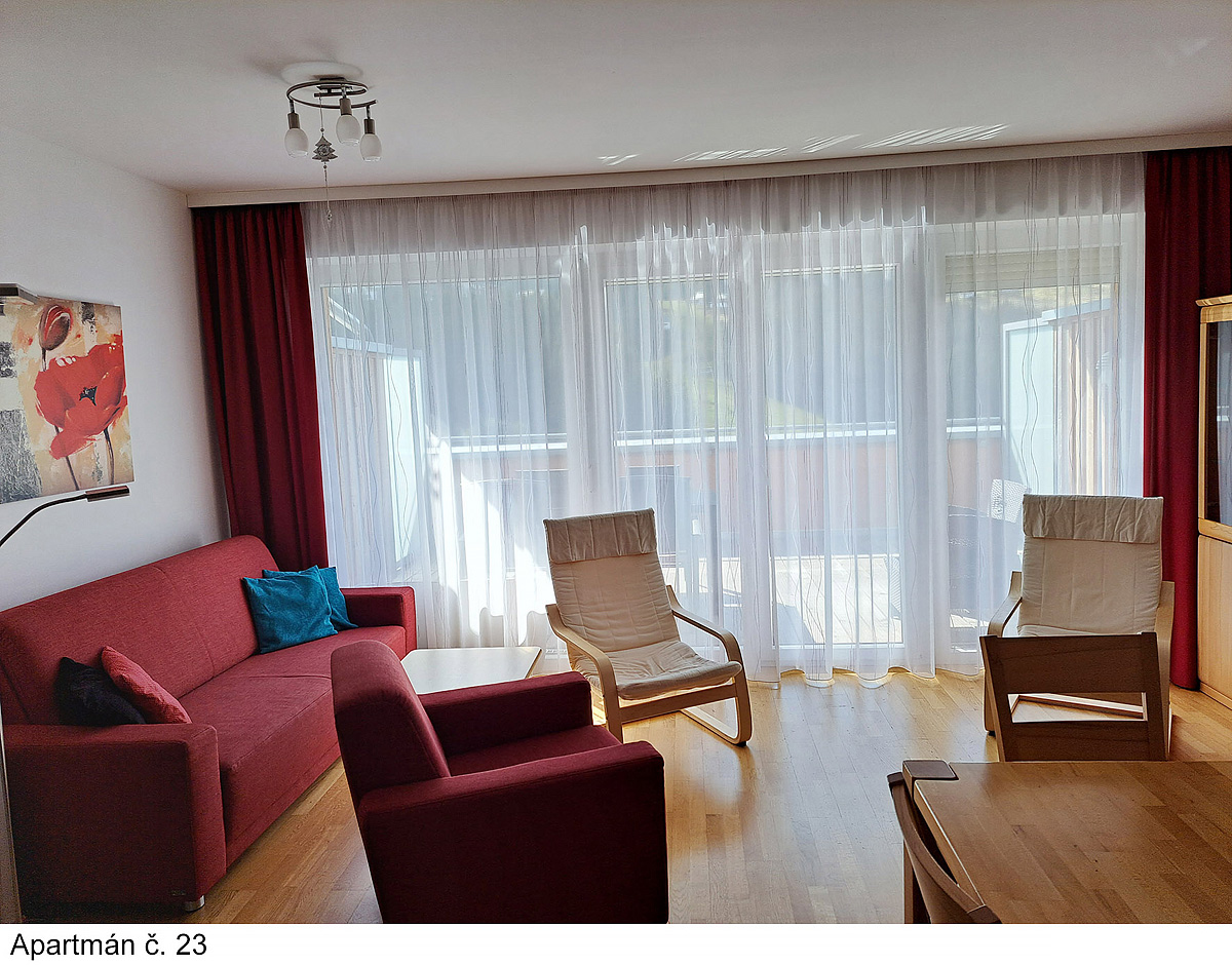 klidná poloha apartmánů s nádherným výhledem na okolní vrcholky hor
