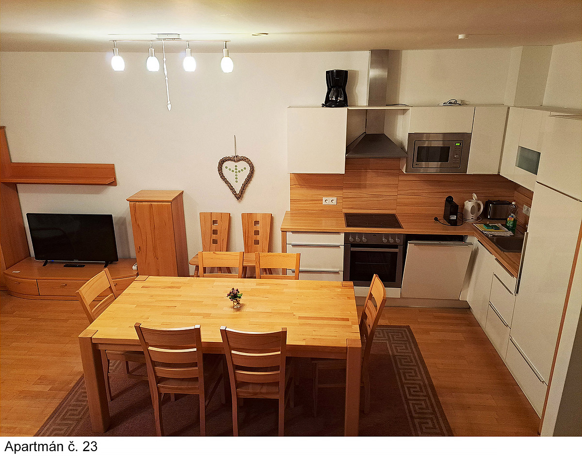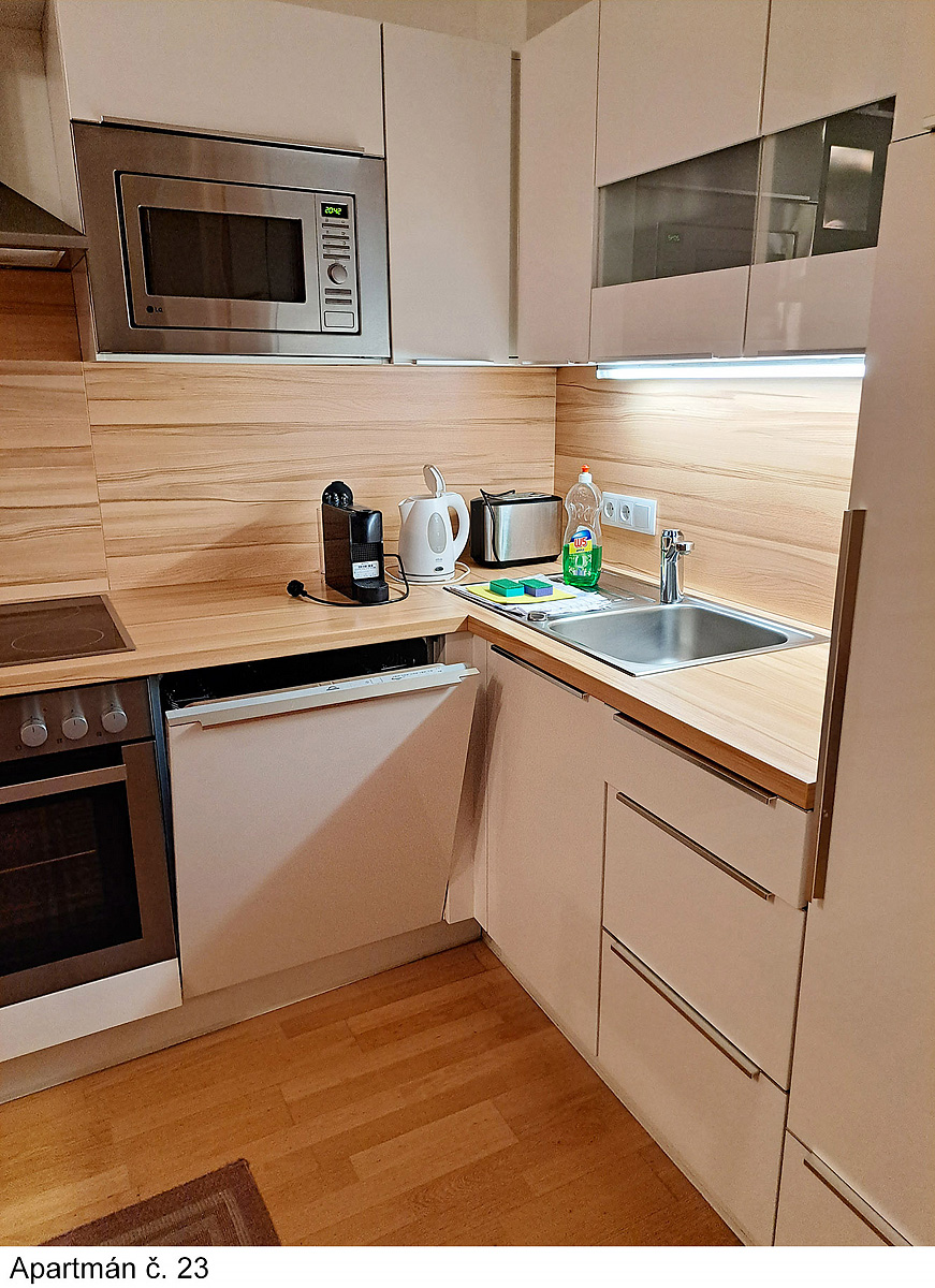 TV sat., myčka nádobí, trouba, mikrovlnka, kávovar Nespresso, rychlovarná konvice, wi-fi připojení k internetu